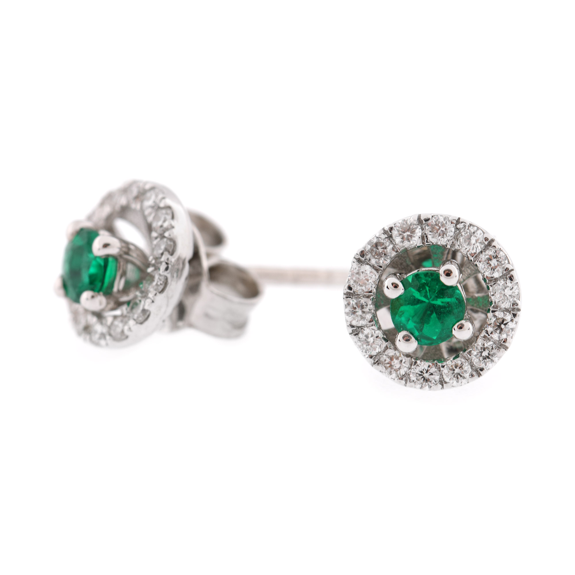 2 smaralde rotund fațetete, culoare verde, claritate SI, cca. 0,16 ct. și 28 diamante rotunde briliant, culoare I-J, claritate VS-SI, cca. 0,18 ct.