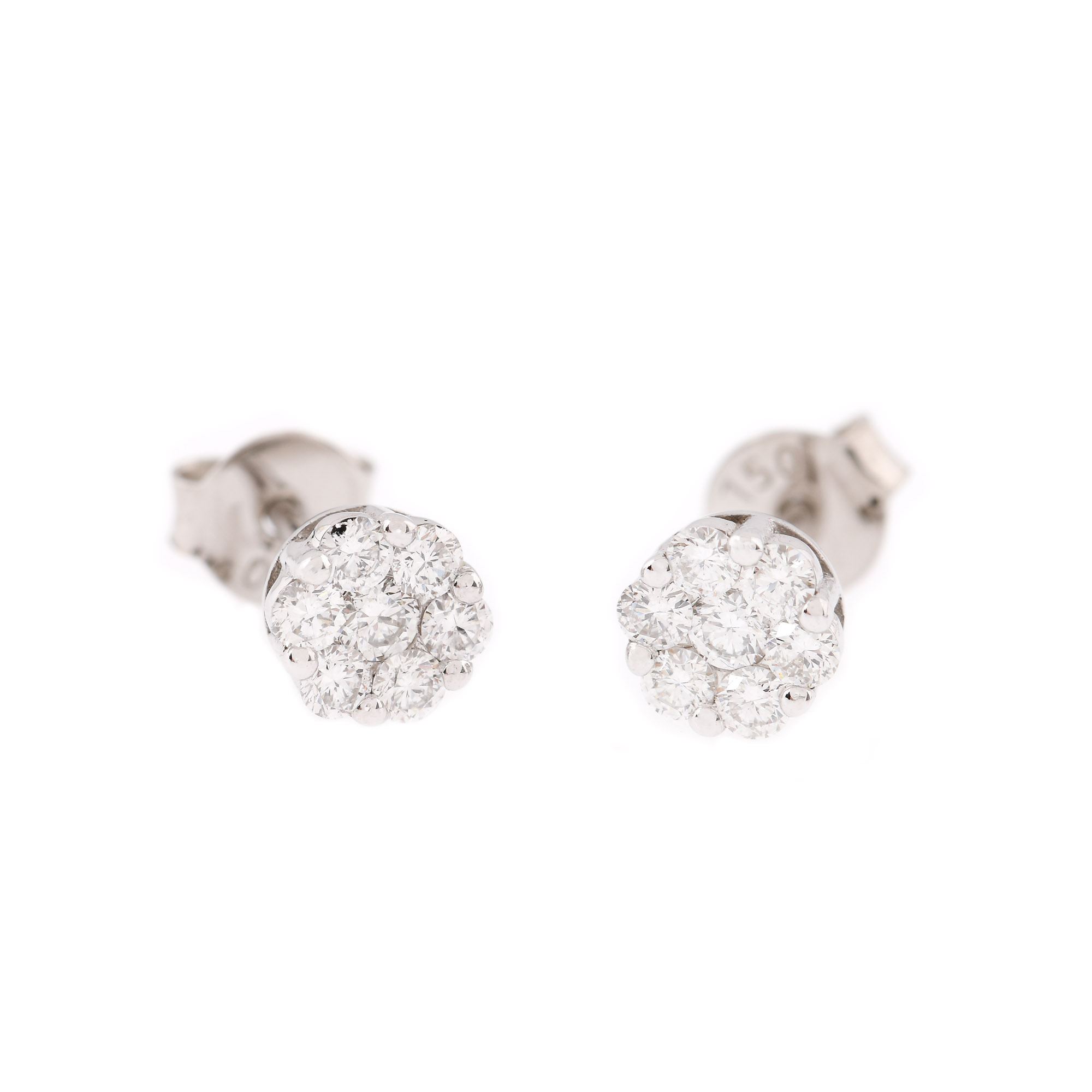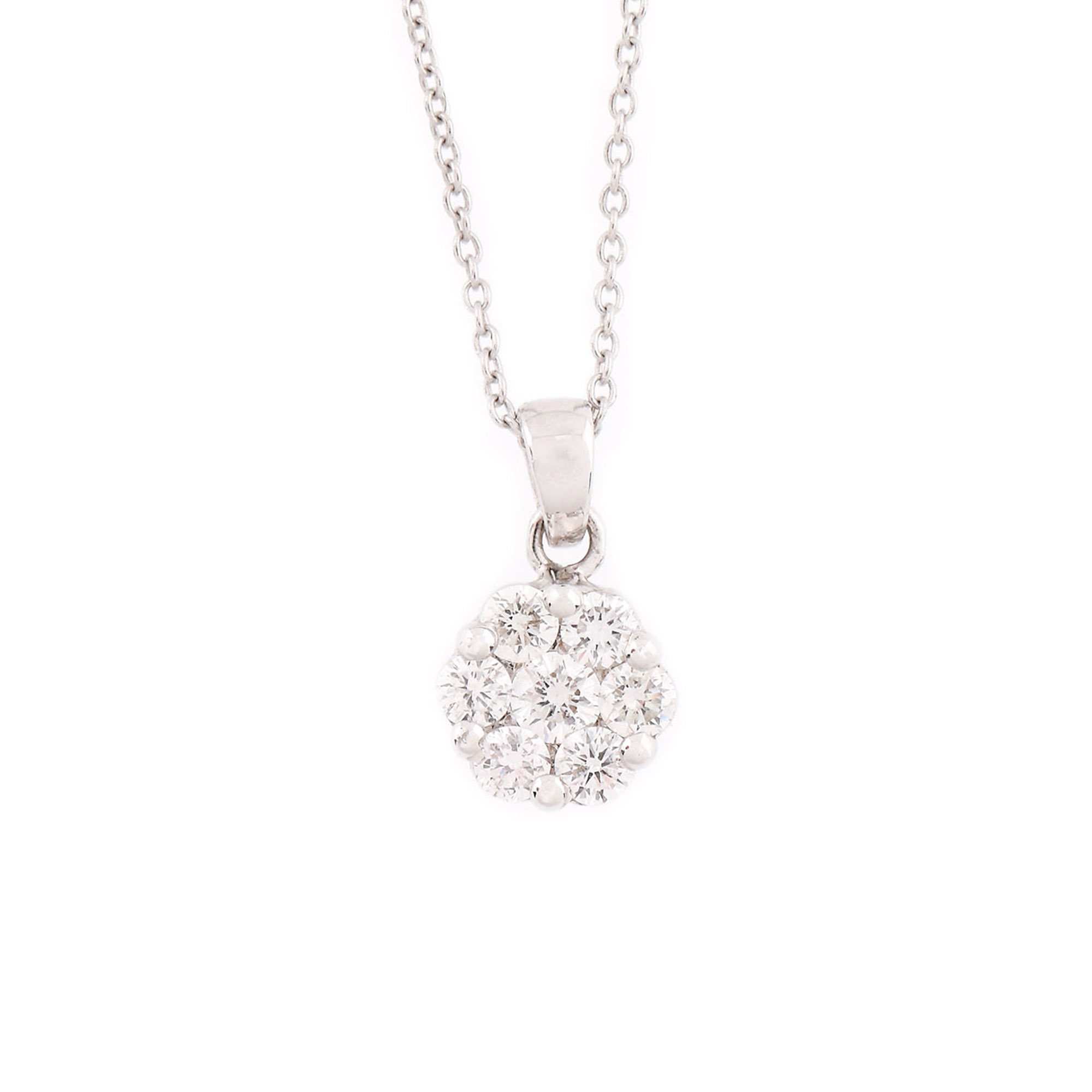 36. Set din aur alb, format din lanț cu pandantiv și pereche de cercei, decorat cu cluster de diamante