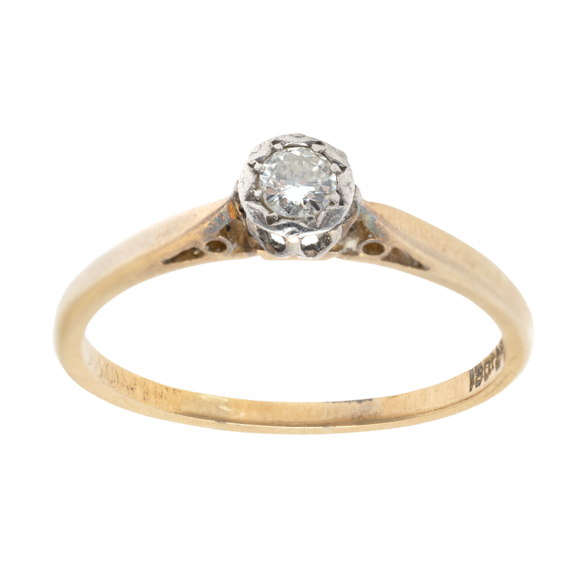 1 diamant rotund briliant, culoare I-J, claritate VS2, cca. 0,15 ct.