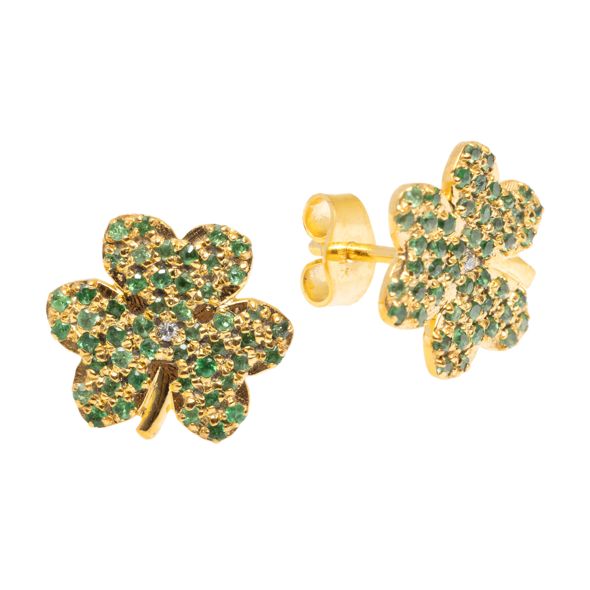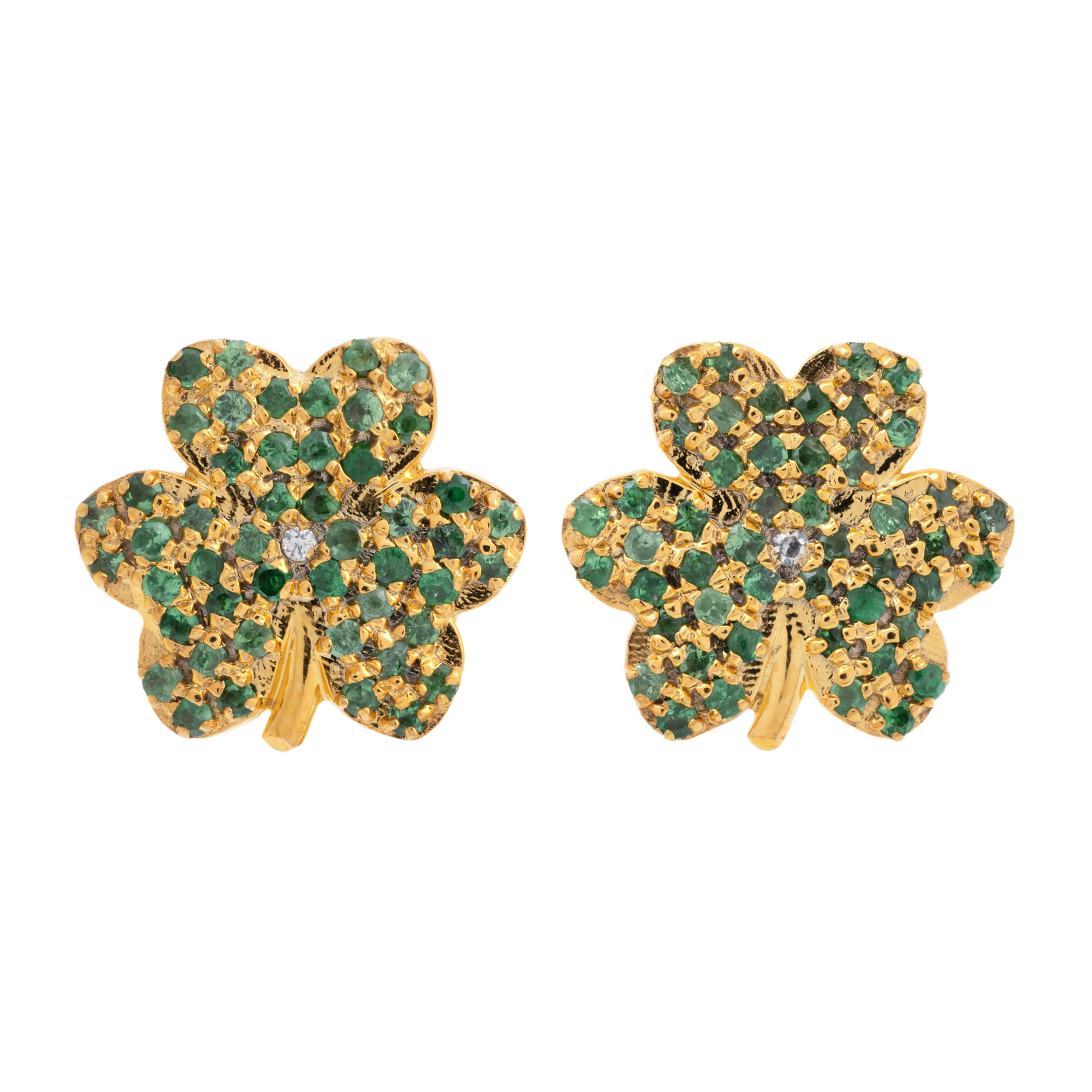 44. Pereche de cercei din aur Maty, sub formă de trifoi, decorată cu diamante și smaralde
