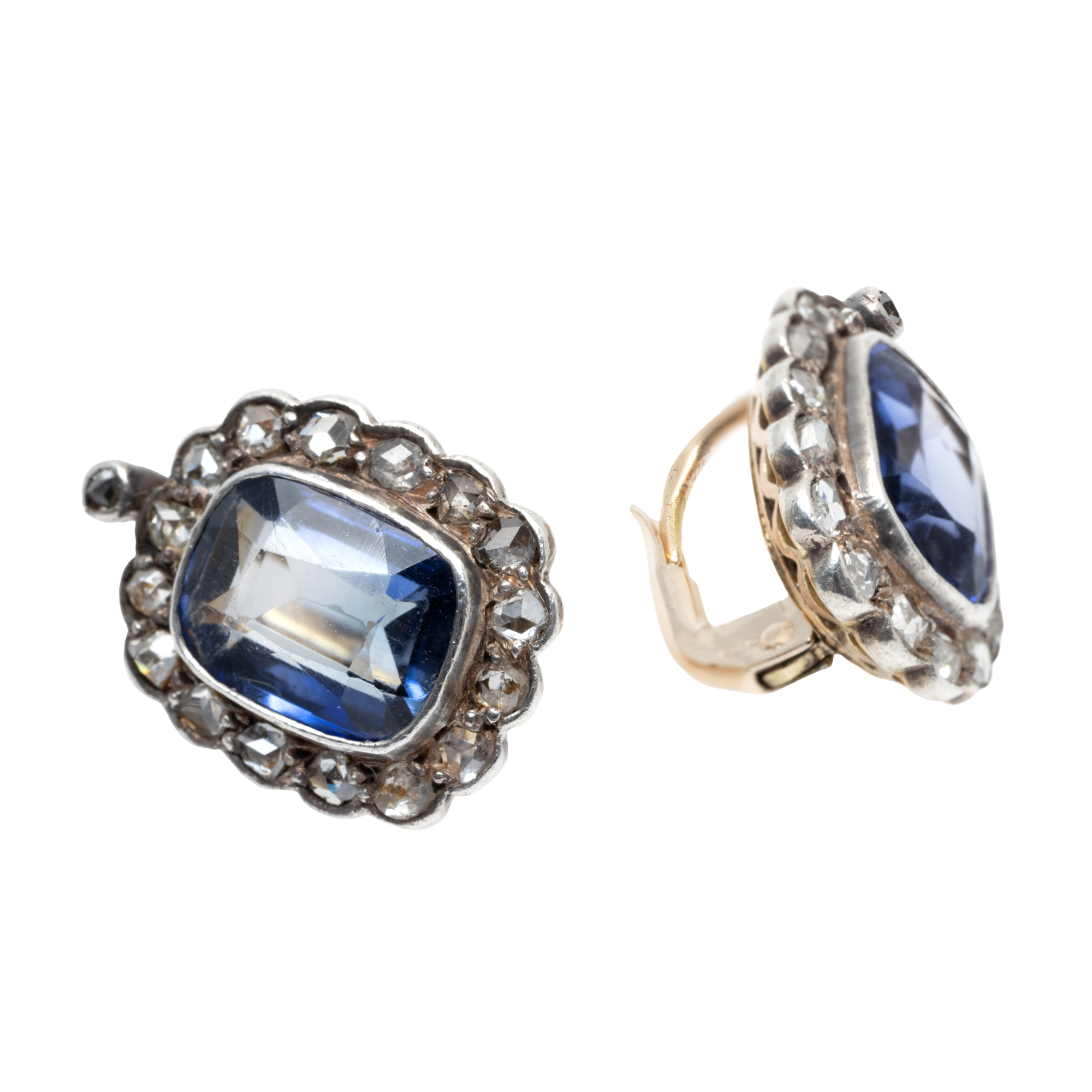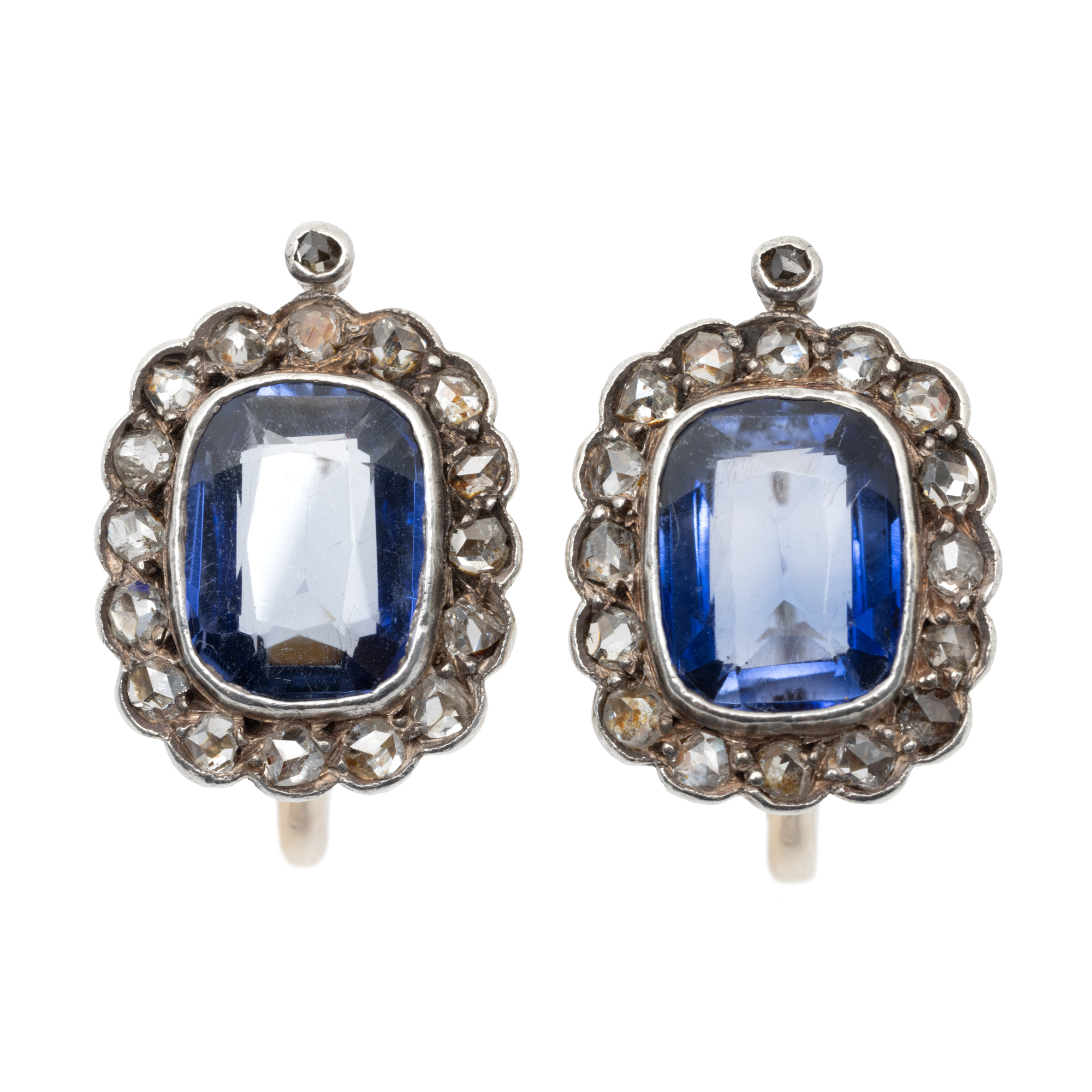 55. Pereche de cercei din aur și argint, decorată cu diamante, cca. 1910