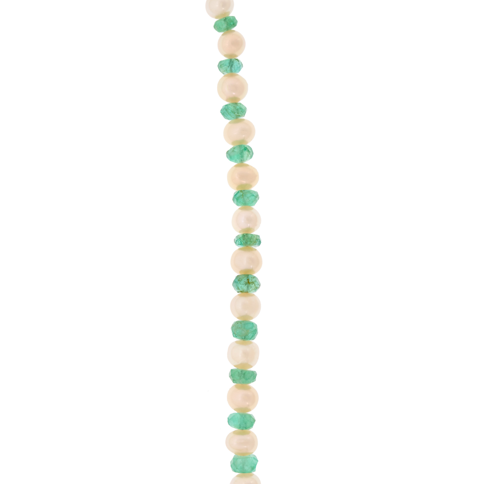 1 diamant single cut, culoare I-J, claritate I1, cca. 0,008 ct.; 1 smarald rotund fațetat, culoare verde, claritate heavily included, cca. 0,01 ct.; perle de cultură rotunde albe și smaralde beads