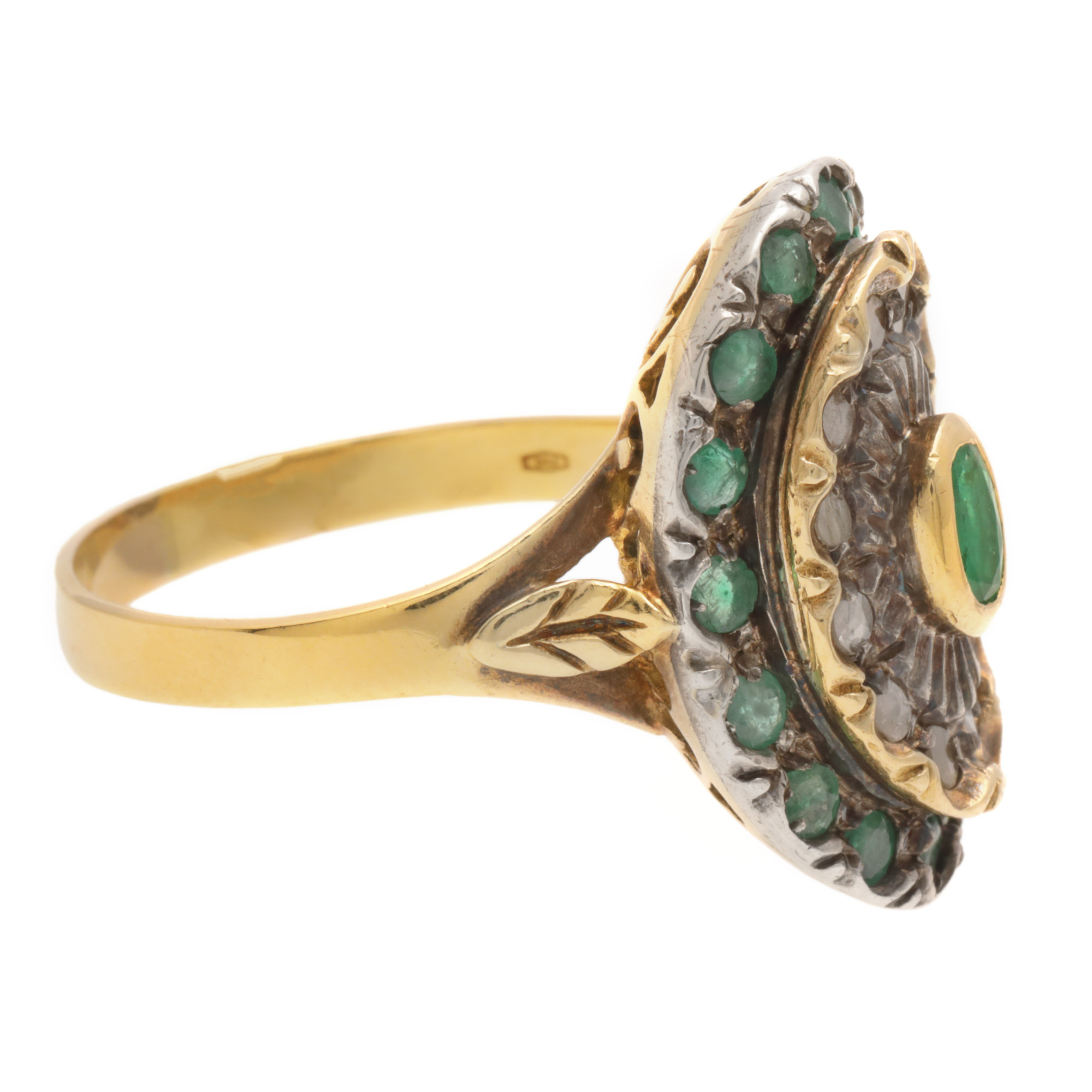 27. Inel din aur și argint, decorat cu diamante și smaralde
