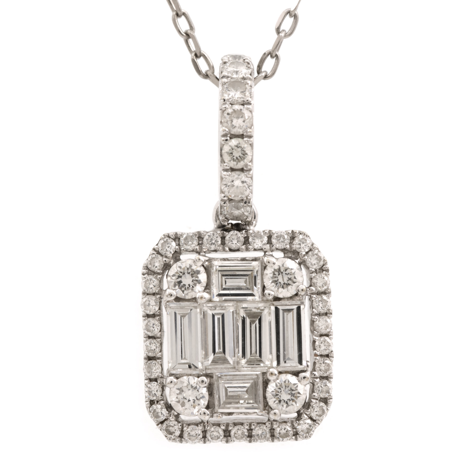 7. Lanț cu pandantiv din aur alb, decorat cu diamante