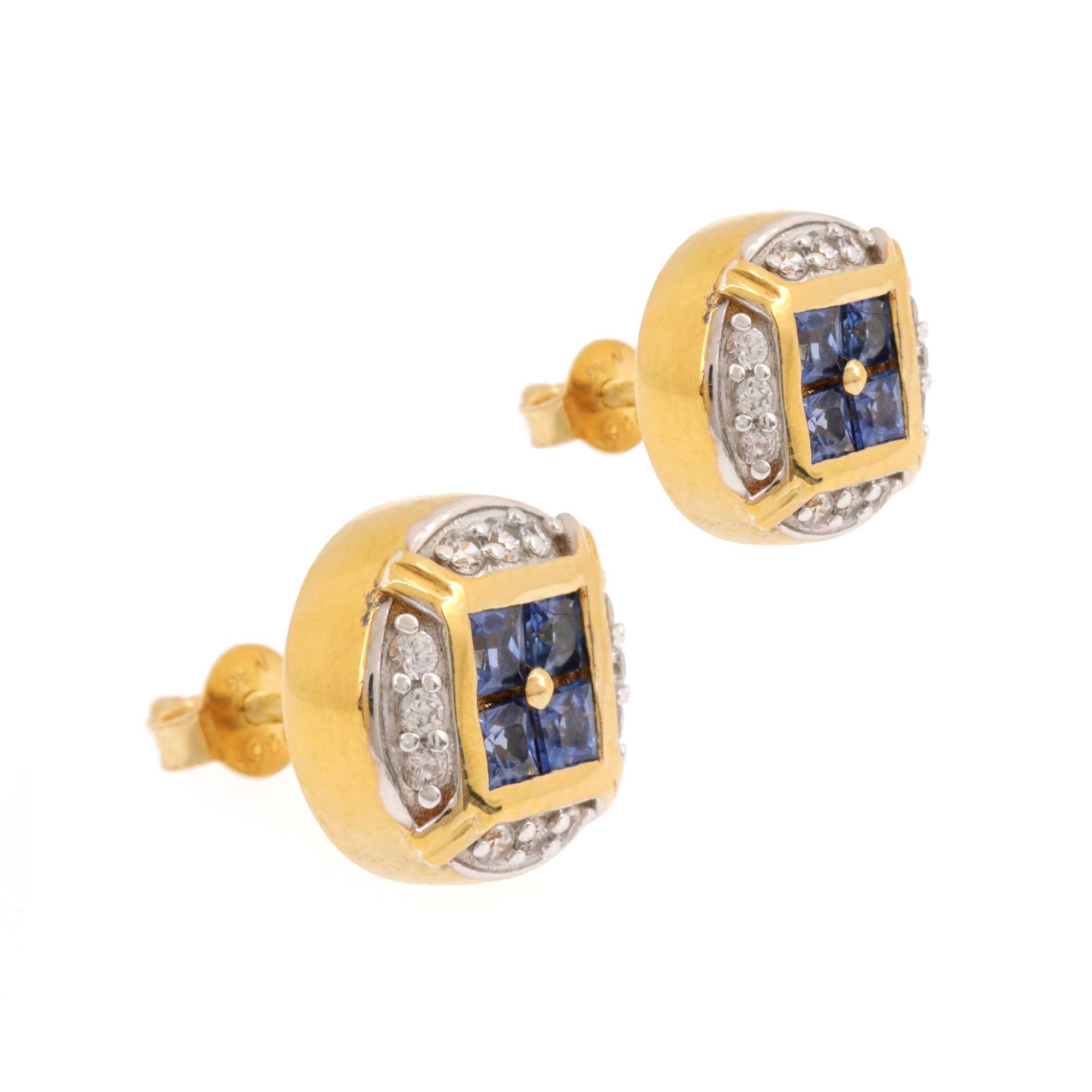 28. Pereche de cercei din argint aurit, decorată cu safire