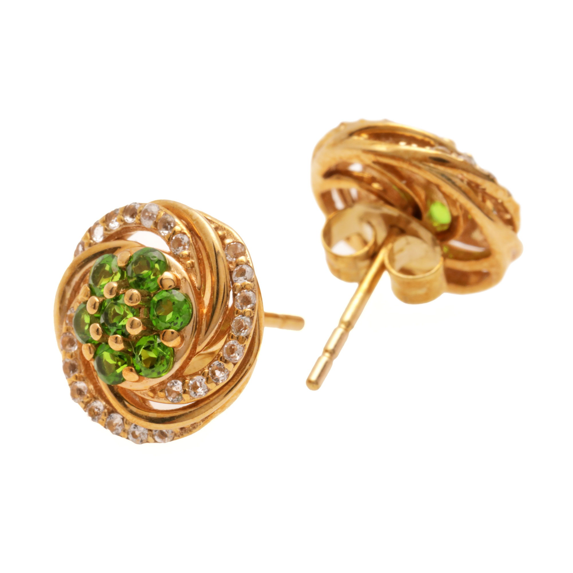 12. Pereche de cercei din aur, decorată cu cromdiopside și topaze