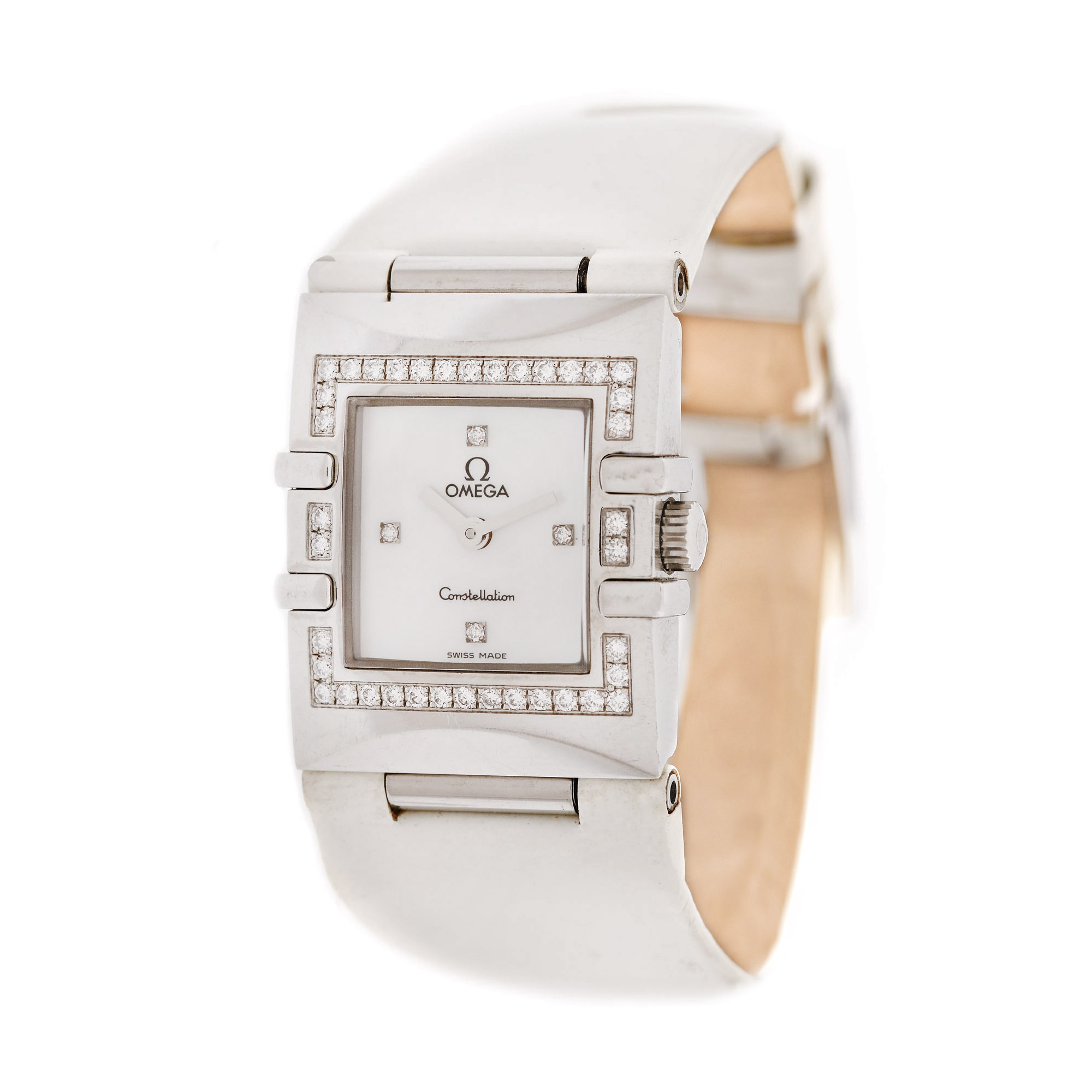 1. Ceas Omega Constellation Quadra, de mână, de damă, decorat cu diamante