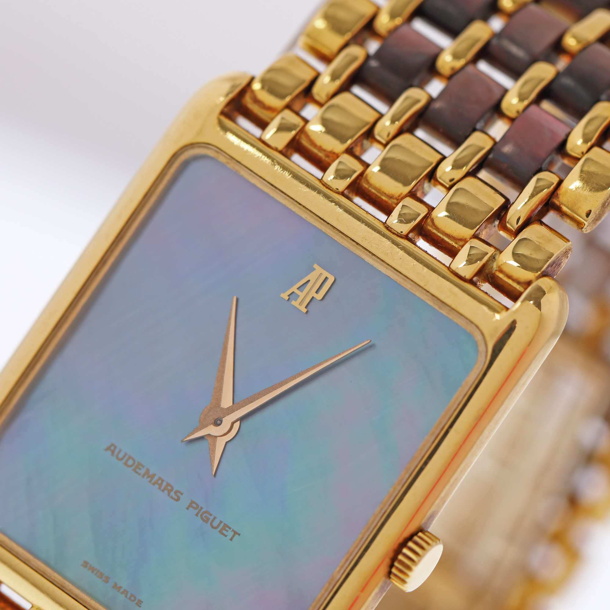 53. Ceas Audemars Piguet, din aur și sidef, de mână, unisex, brățară originală din aur și sidef