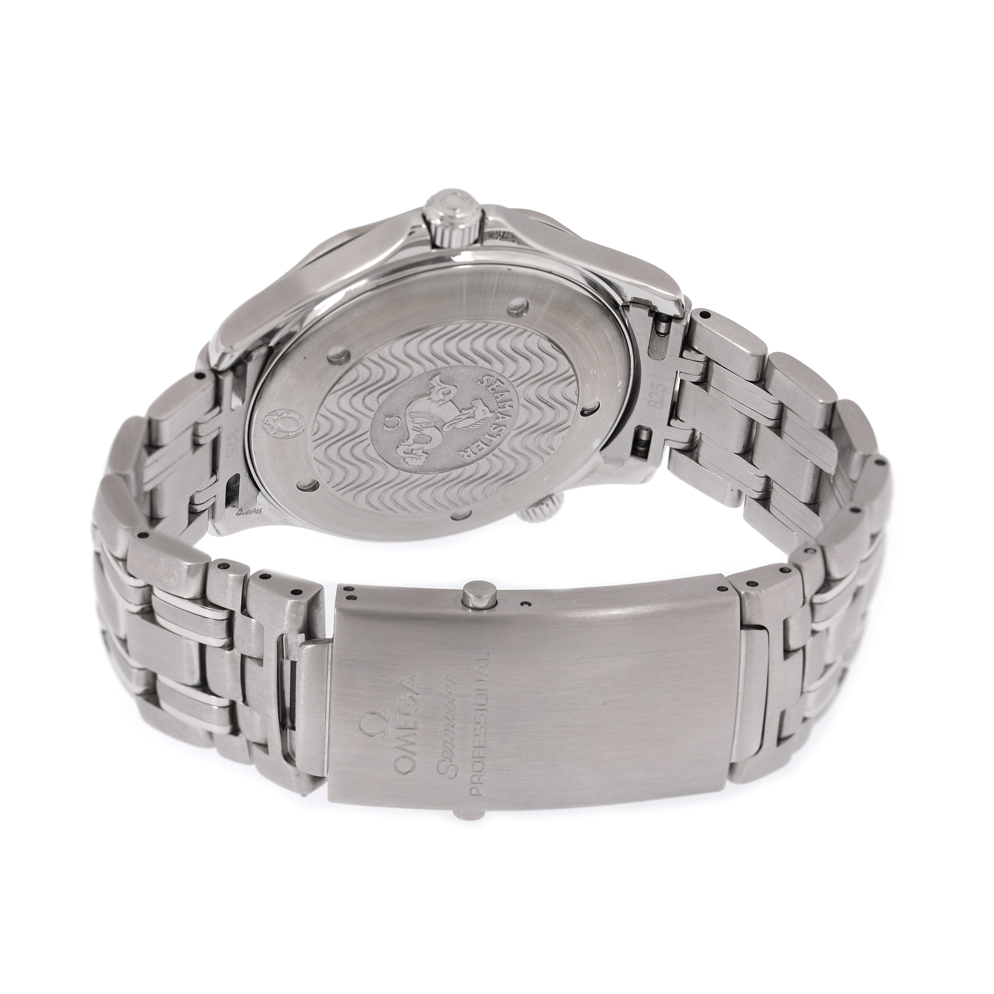 Ceas Omega Seamaster Professional, de mână, bărbătesc, referință 2541.80.00. Mecanism quartz, calibrul 1538, bezel rotativ unidirecțional. Cadran de culoare albastru, indici puncte, cu registrul pentru dată în dreptul orei 3. Brățară originală din oțel inoxidabil, cu sistem de închidere de tip deployant.