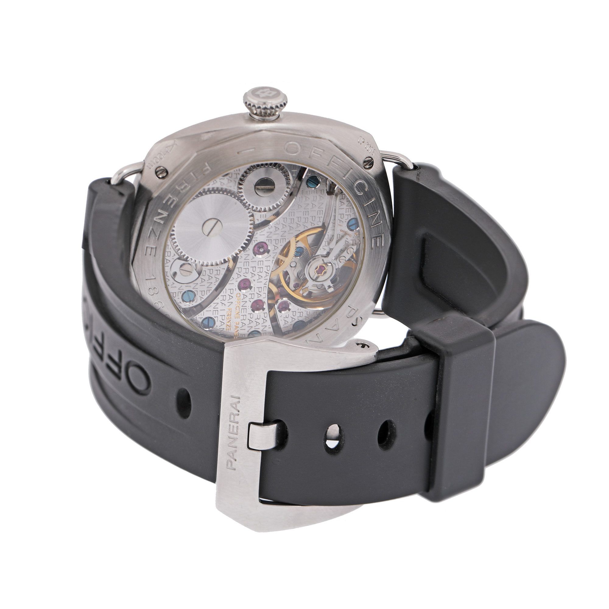 Ceas Panerai Radiomir Black Seal, de mână, bărbătesc, referință PAM 00183. Mecanism cu armare manuală, calibrul OP XI, anterior vitrat. Cadran de culoare negru, indici cu numerale arabe, cu registrul pentru secundar în dreptul orei 9. Curea originală din cauciuc, de culoare neagră, cu sistem de închidere de tip clasic.