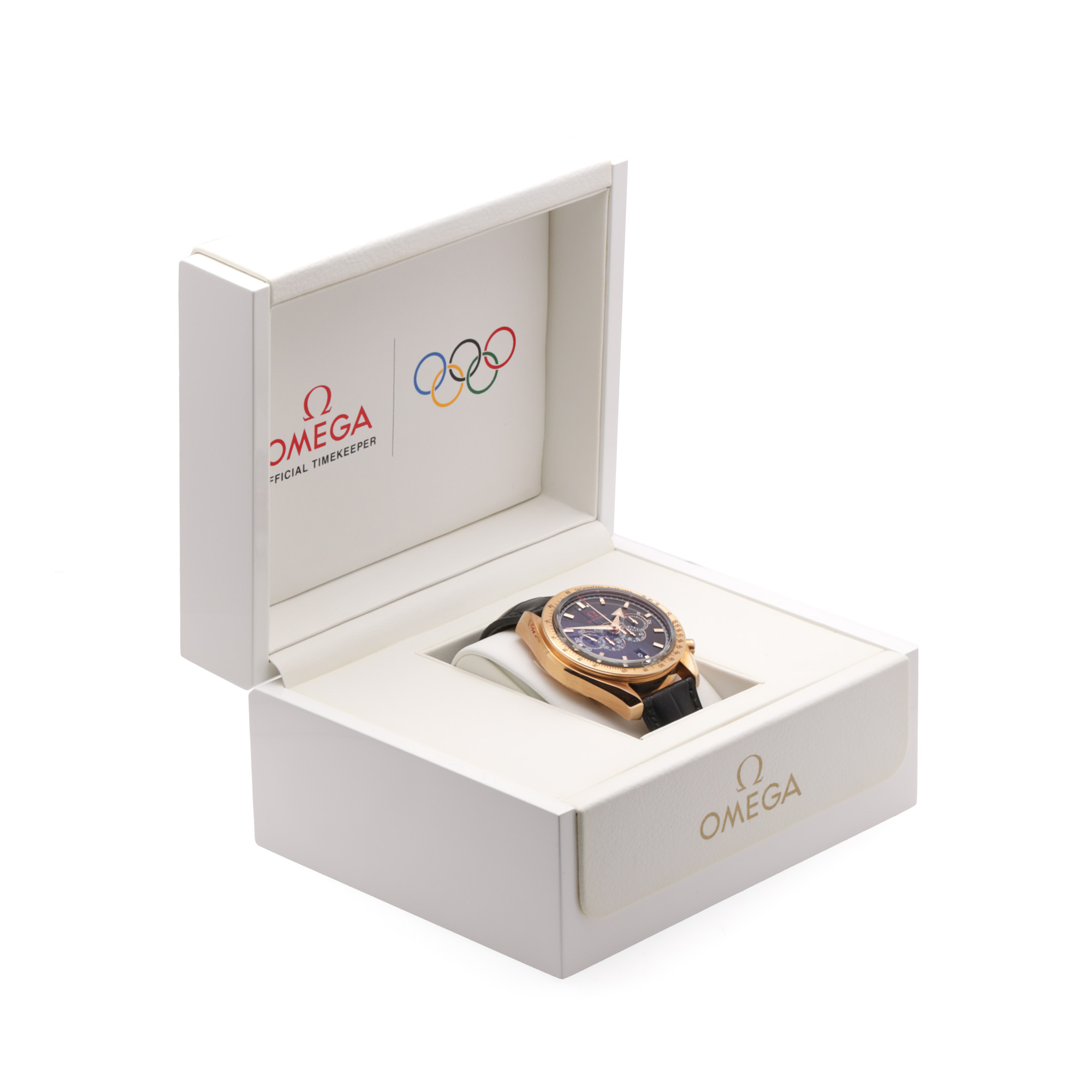 49. Rar Ceas Omega Co-Axial 3888, nepurtat, ediție limitată Olimpiada de la Beijing, din aur, în cutia originală, însoțit de card de garanție, card de atestare a chronometrului, manual de instrucțiuni [2008]