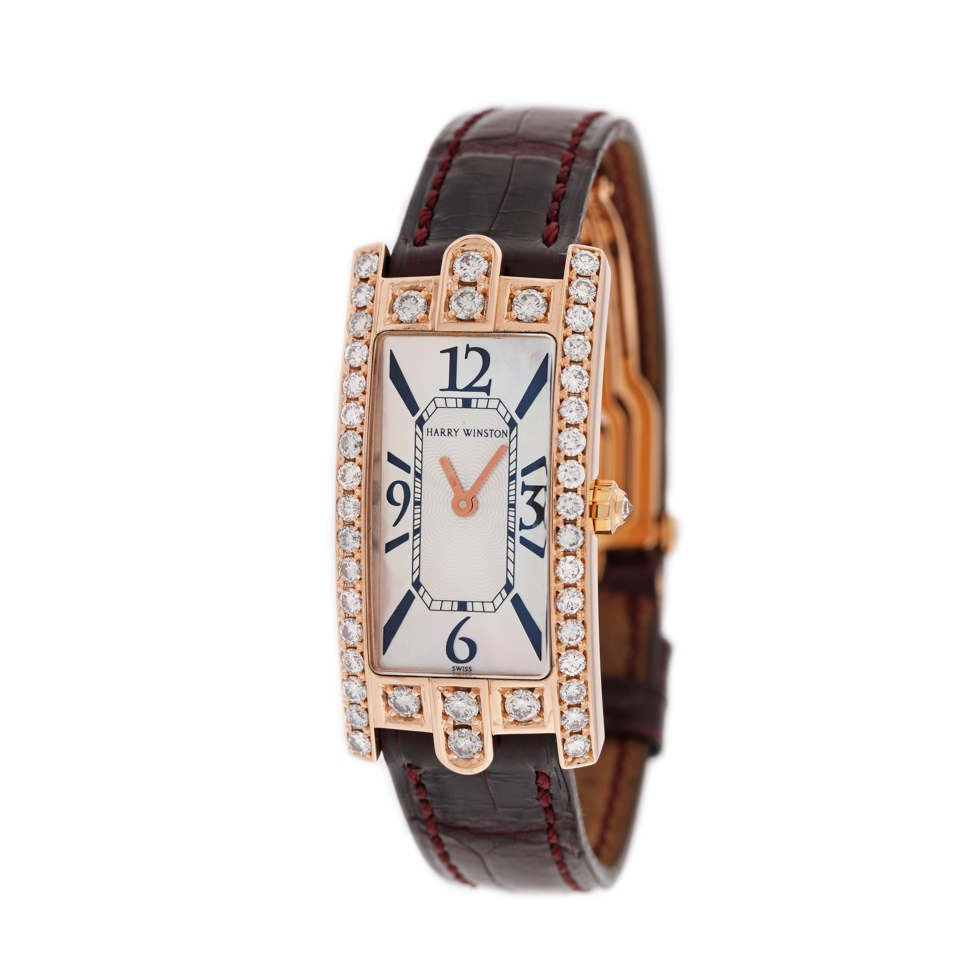 44. Ceas Harry Winston Avenue C Mini din aur roz, de mână, de damă, decorat cu diamante [Cca. 2012]