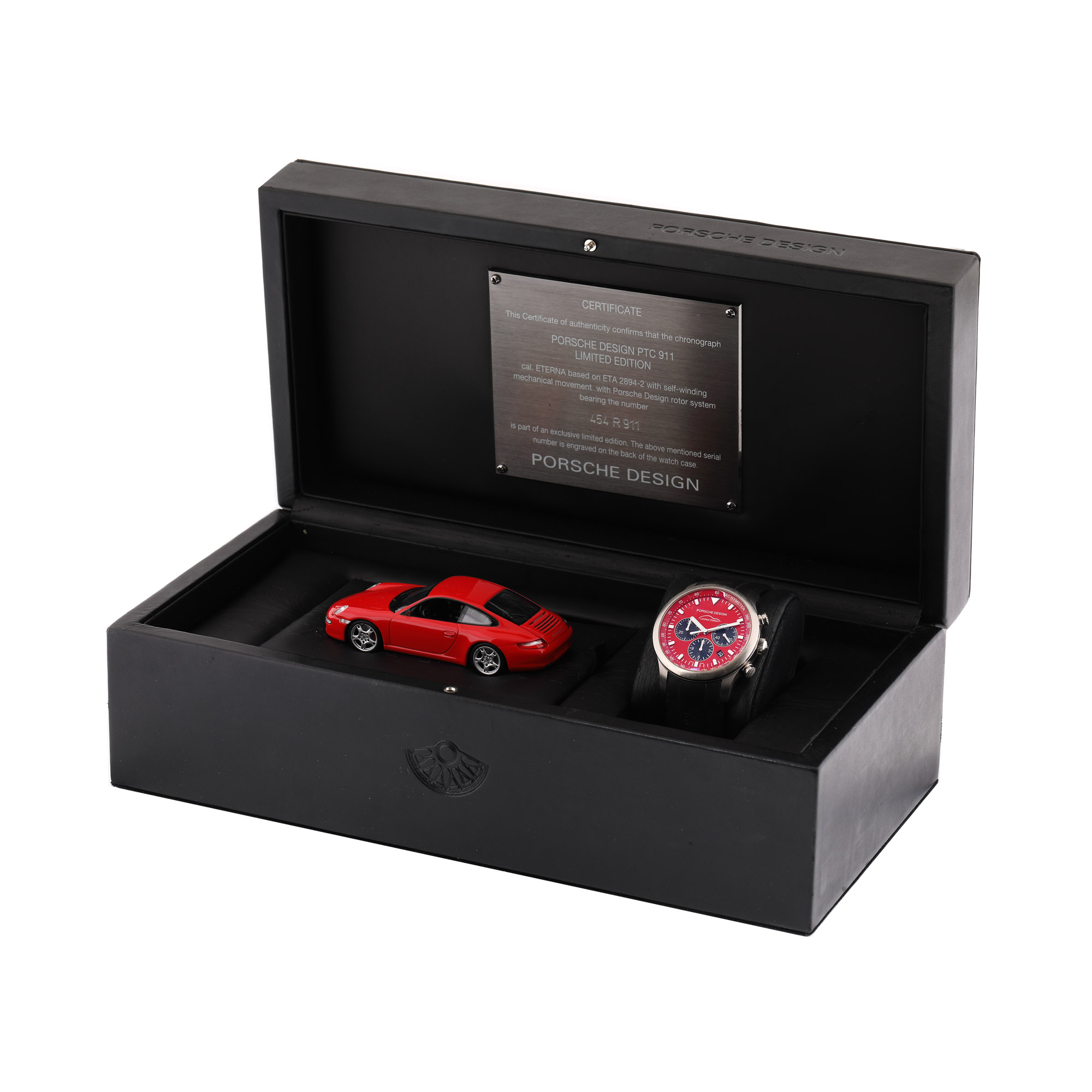 11. Ceas Porsche Design Chronograph din titan, de mână, bărbătesc, însoțit de cutie originală și machetă Porsche 911 Carrera [Cca. 2005]