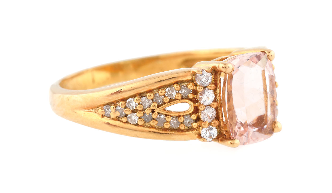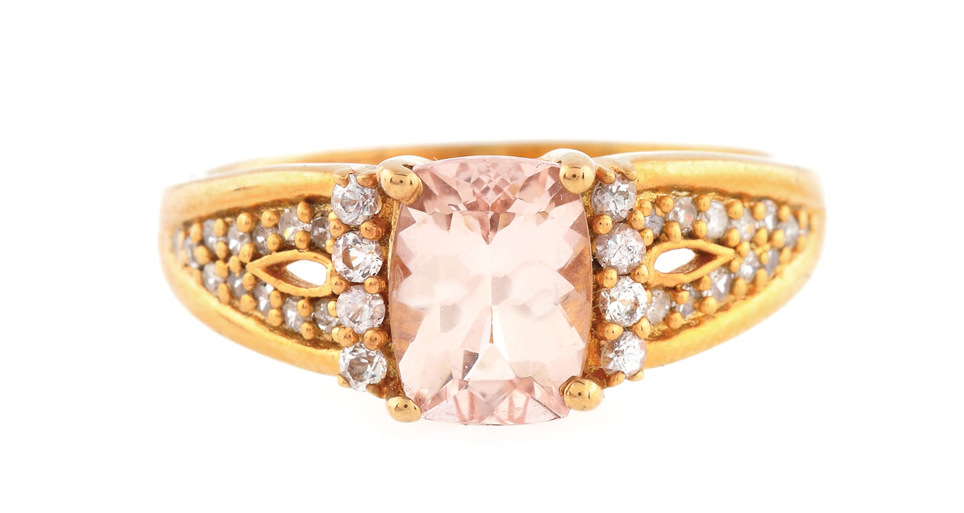 39. Inel din argint aurit, decorat cu morganit, safire albe și diamante