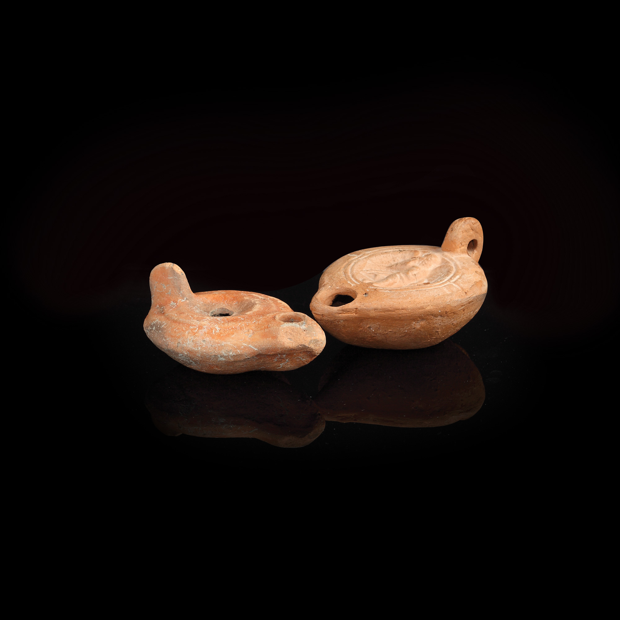 274. Opaițe romane, atelier african, lot de 2 piese, sec. I-II e.n.