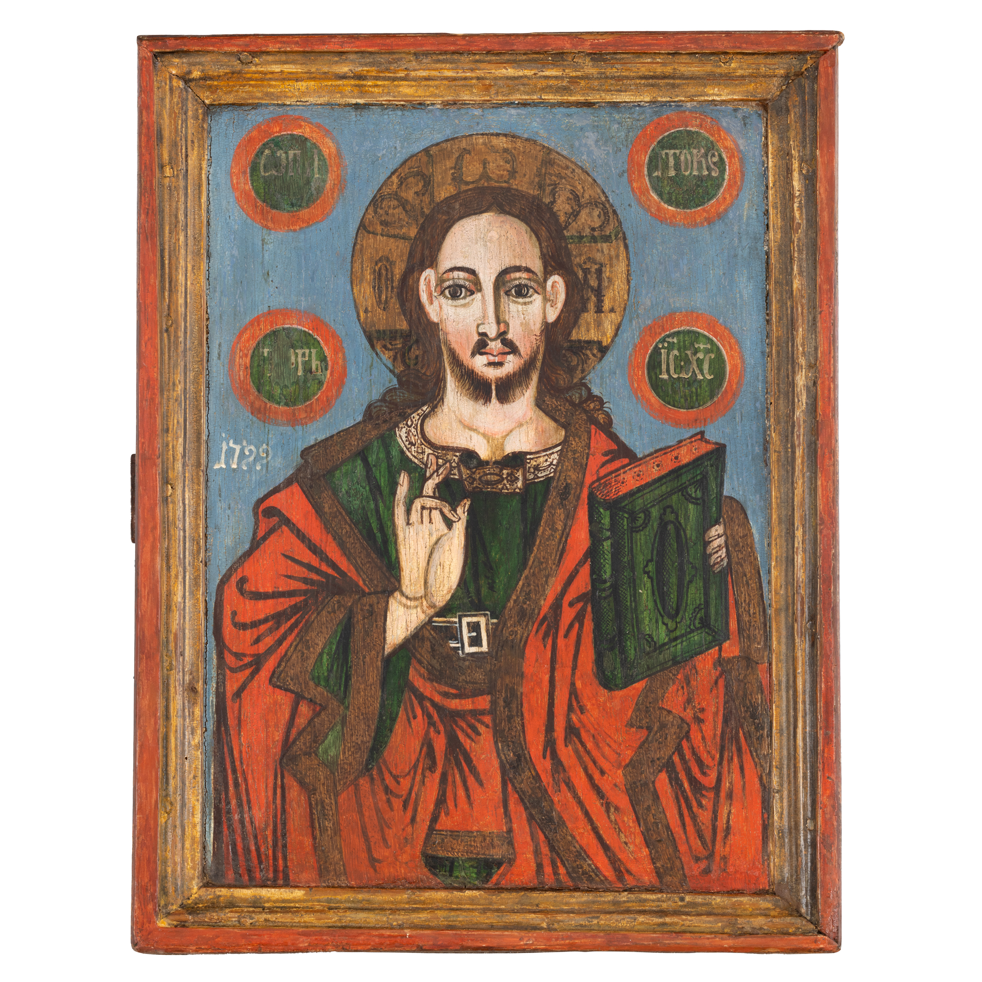 17. Icoană împărătească pe lemn, "Iisus Hristos", Țara Românească, școală post-brâncovenească, jumătatea sec. XVIII