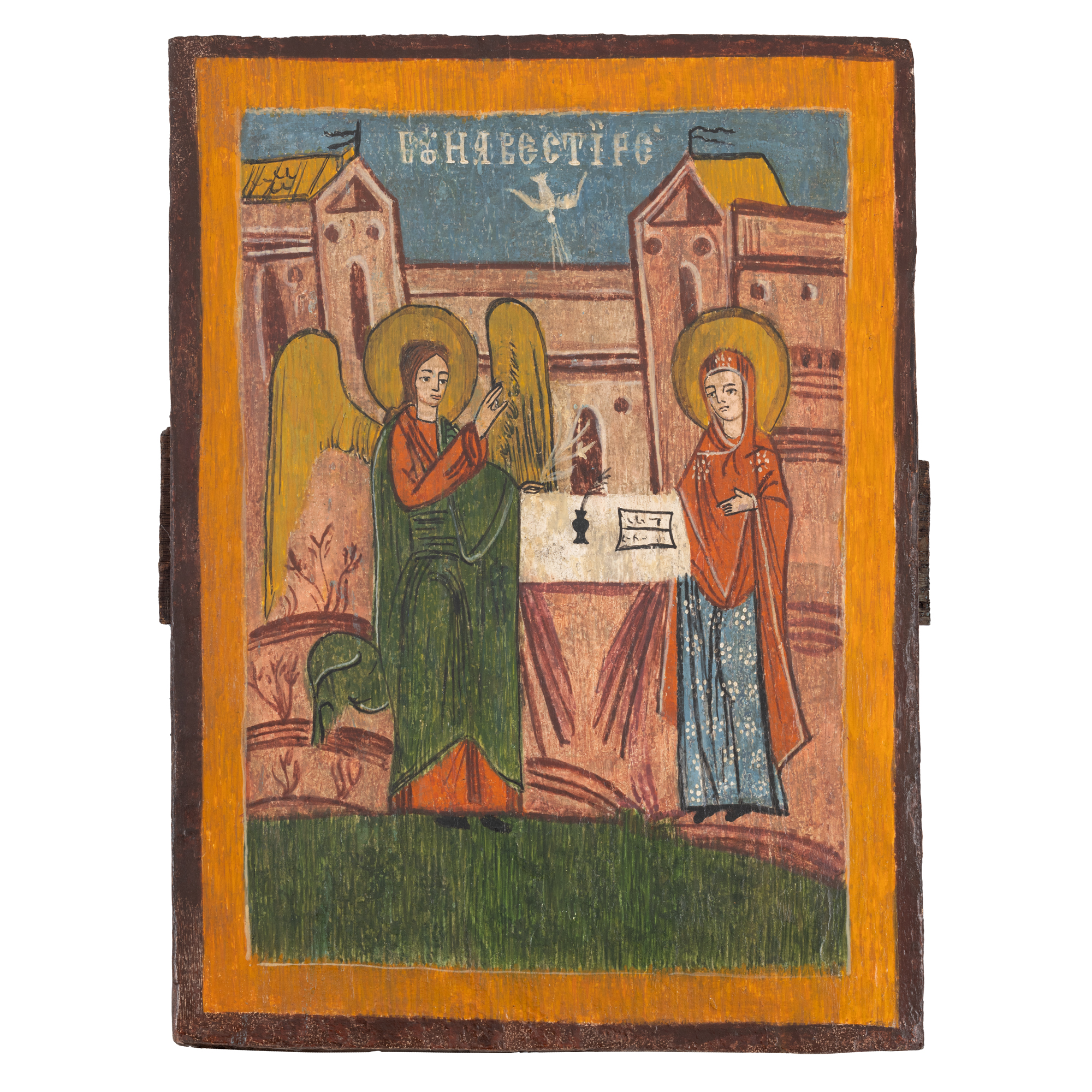 36. Icoană pe lemn, ”Buna Vestire”, școală românească, sfârșitul sec. XVIII-începutul sec. XIX