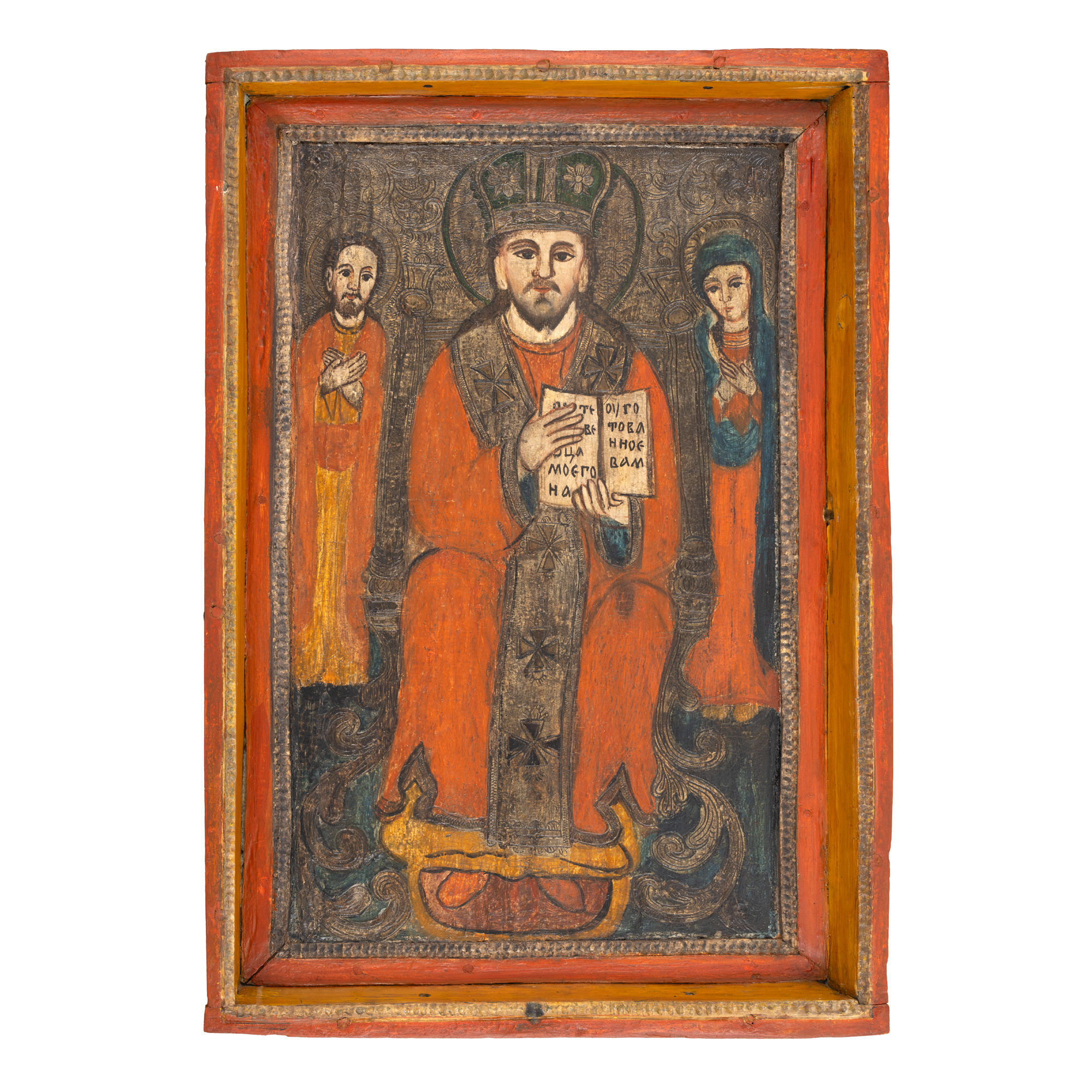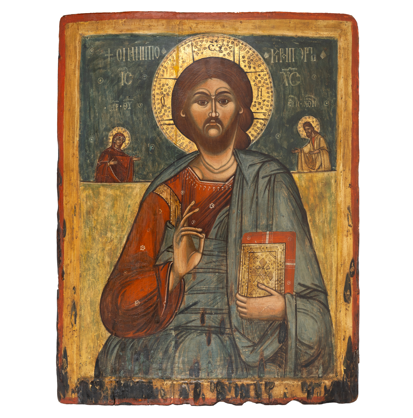 26. Icoană împărătească pe lemn, ”Iisus Hristos Împărat și Mare Arhiereu” (Deisis), școală post-brâncovenească, probabil Oltenia, a doua jumătate a sec. XVIII
