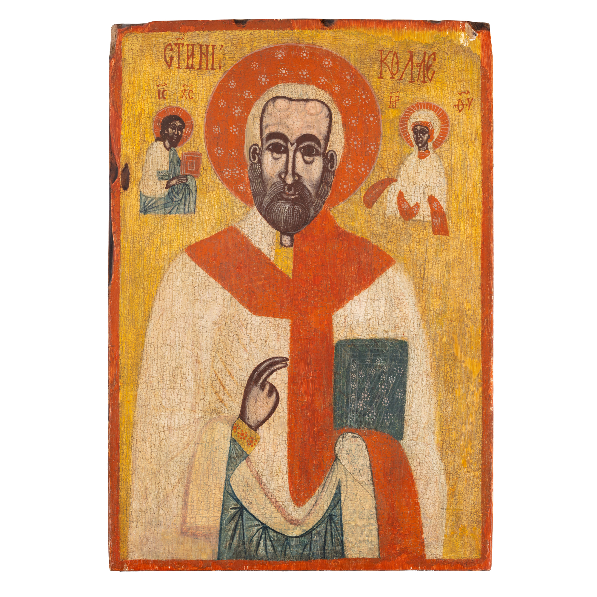 6. Icoană împărătească pe lemn, ”Sfântul Ierarh Nicolae”, școală transilvăneană, probabil atelier rutean, a doua jumătate a sec. XVIII, piesă de colecție