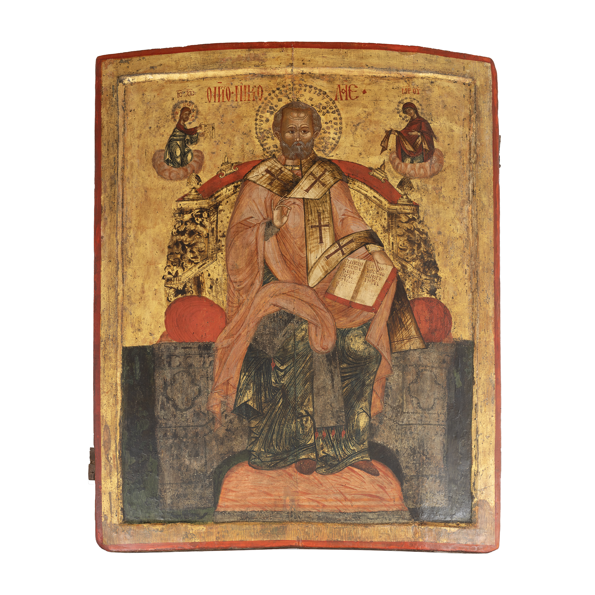 25Т. Icoană împărătească pe lemn, ”Sfântul Ierarh Nicolae tronând”, atribuit Costandin Zugravul, Țara Românească, școală brâncovenească, epoca lui Constantin Brâncoveanu, ultimul deceniu al sec. XVII, piesă muzeală