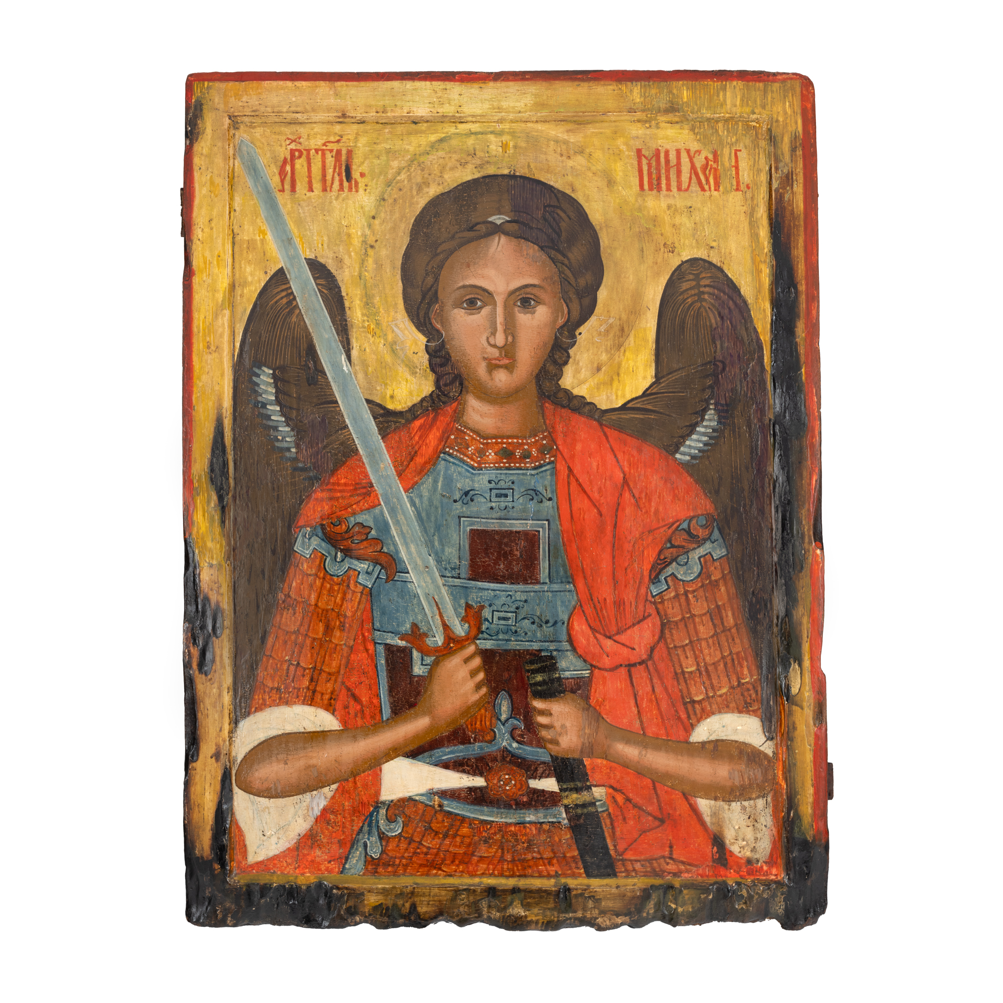 1Т. Icoană împărătească pe lemn, ”Sfântul Arhanghel Mihail”, Țara Românească, școală pre-brâncovenească, epoca lui Matei Basarab, mijlocul sec. XVII, piesă muzeală