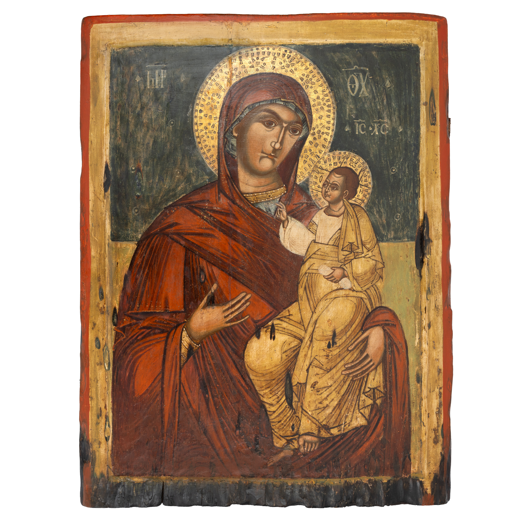 21Т. Icoană împărătească pe lemn, ”Maica Domnului cu Pruncul (Hodighitria)”, Țara Românească, școală brâncovenească, epoca lui Constantin Brâncoveanu, sfârșitul sec. XVII, piesă muzeală