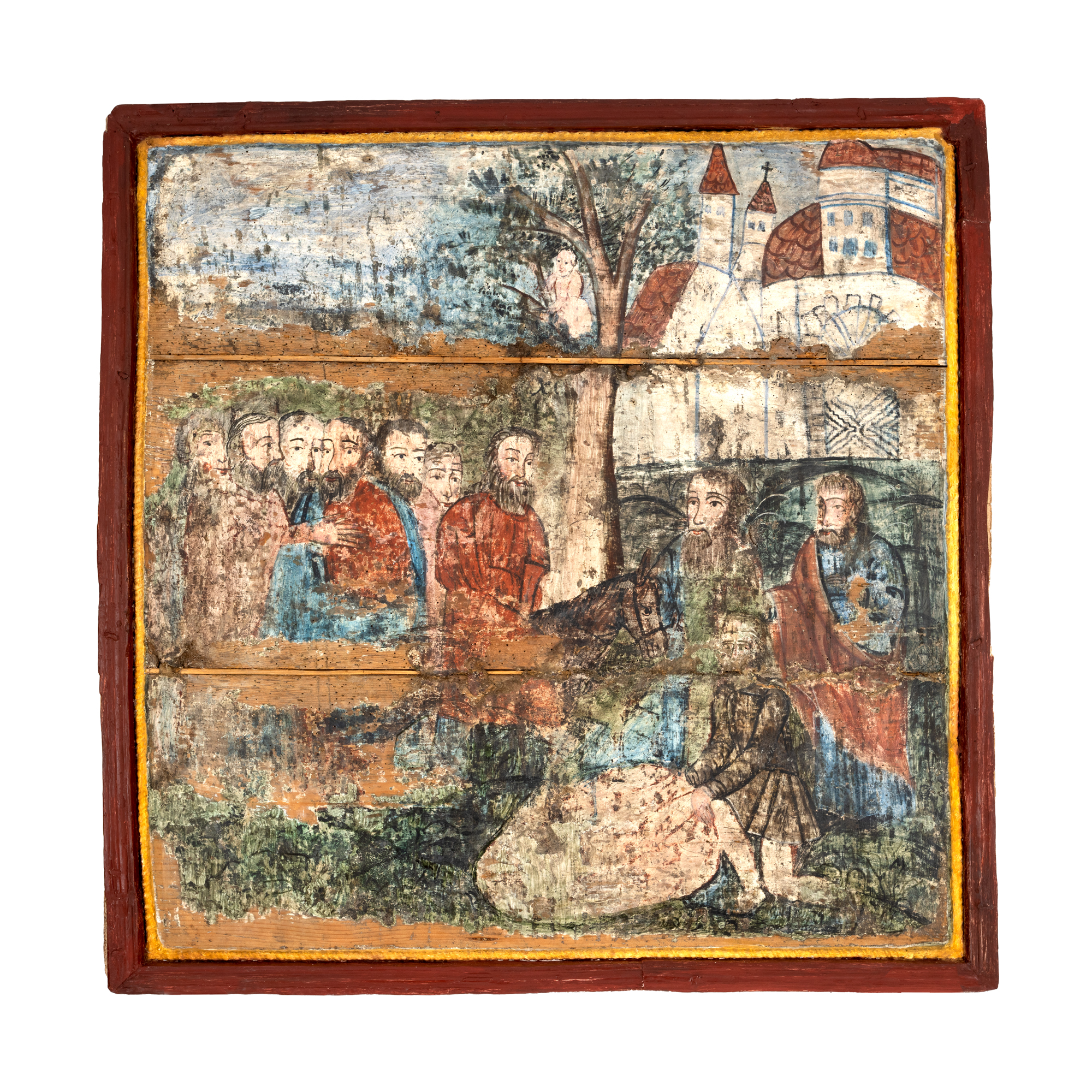 10F. Frescă pe lemn, ”Intrarea în Ierusalim (Duminica Floriilor)”, școală transilvăneană, atelier din Maramureș, a doua jumătate a sec. XVIII, raritate, de colecție