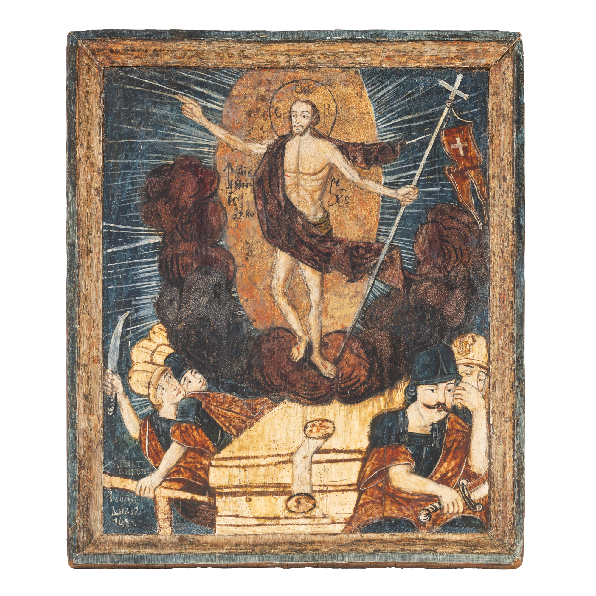 34. Icoană pe lemn, ”Învierea Domnului”, școală românească, sfârșitul sec. XVIII-începutul sec. XIX