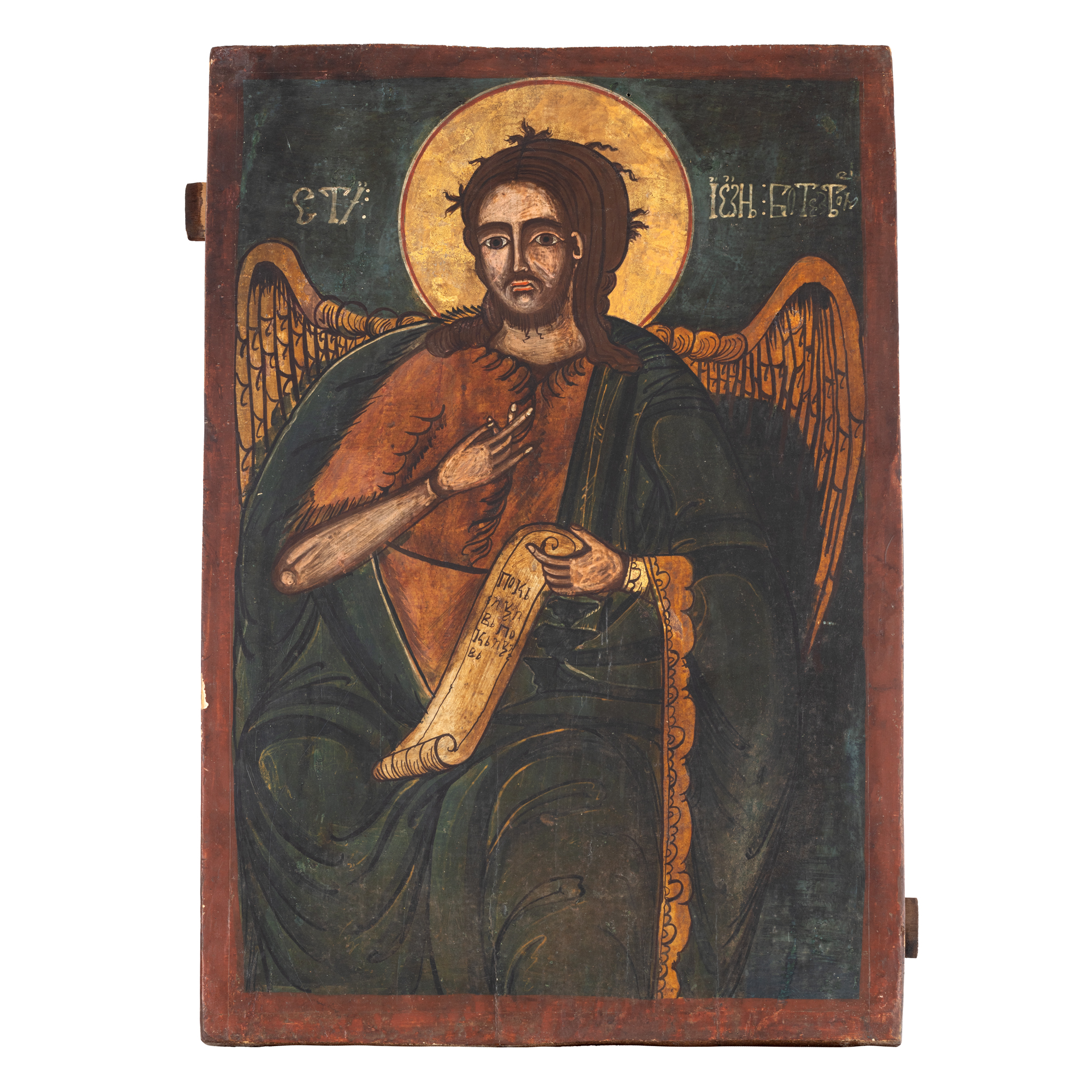 27. Icoană împărătească pe lemn, ”Sfântul Ioan Botezătorul - Îngerul Deșertului”, școală post-brâncovenească, probabil Oltenia, sfârșitul sec. XVIII-începutul sec. XIX