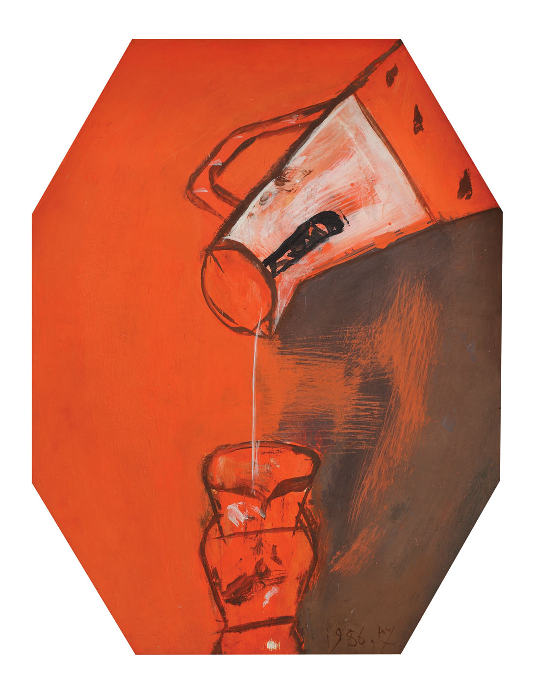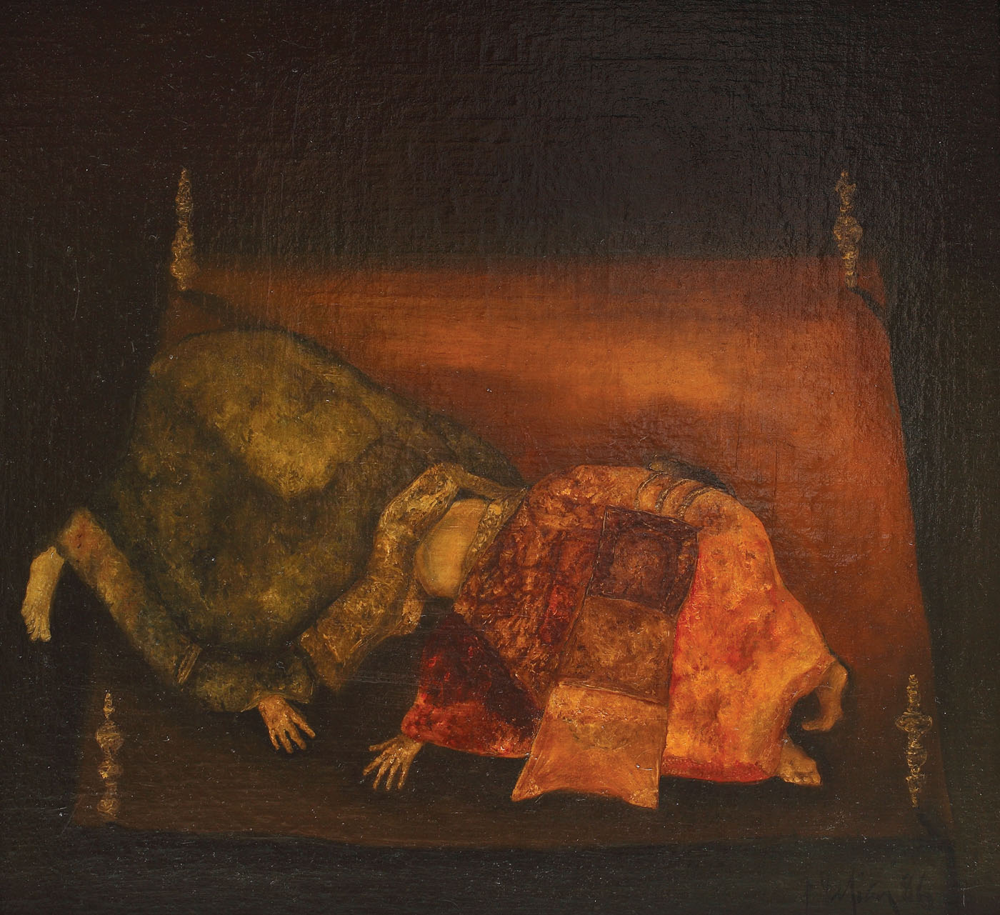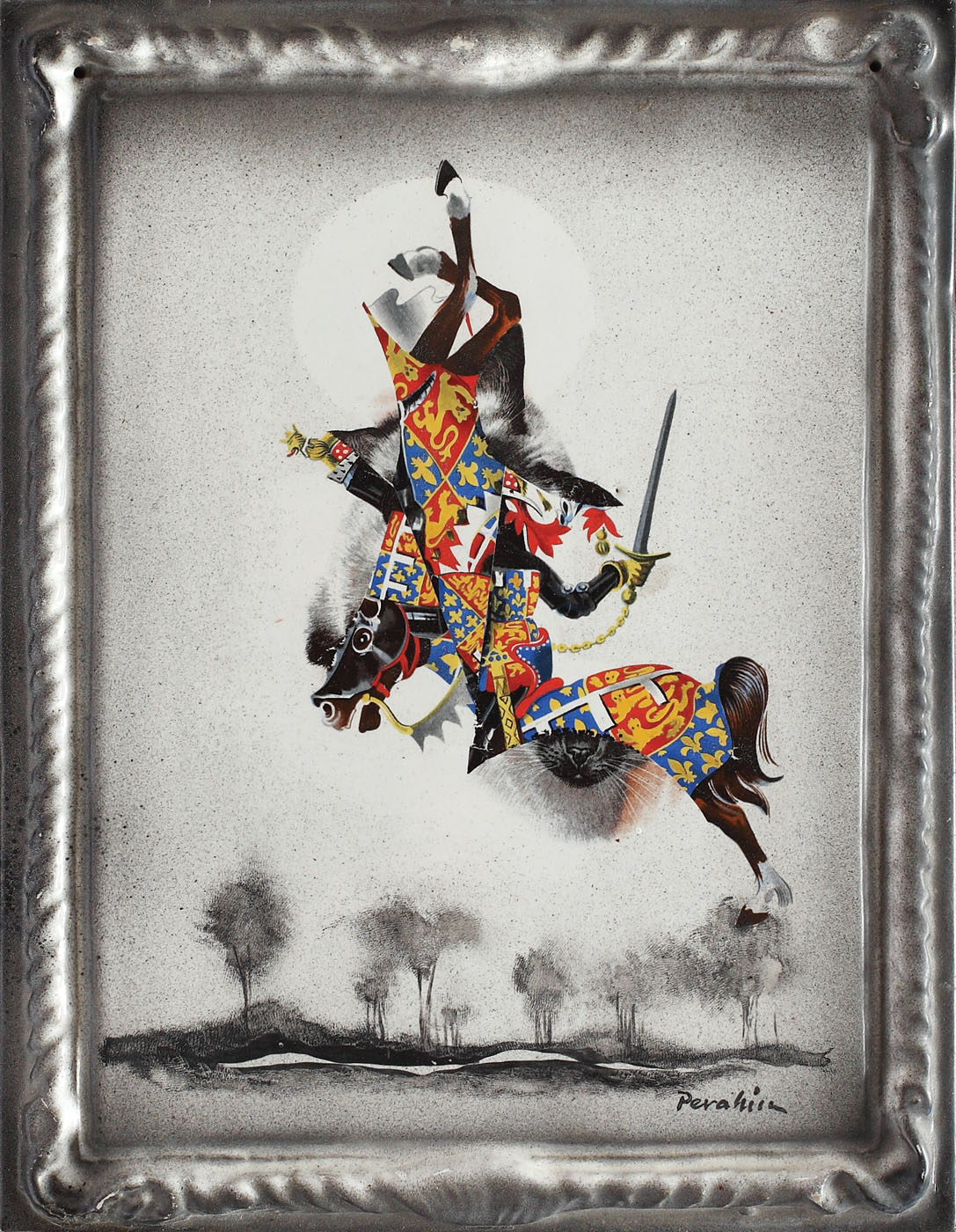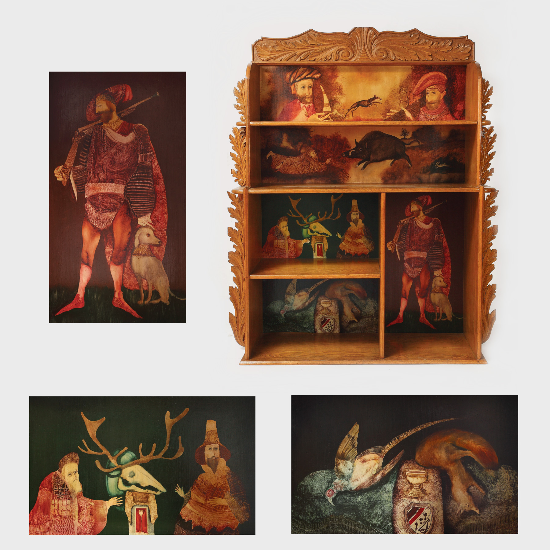 223. Consolă din lemn, pictată cu scene cavalerești și de vânătoare [1988]