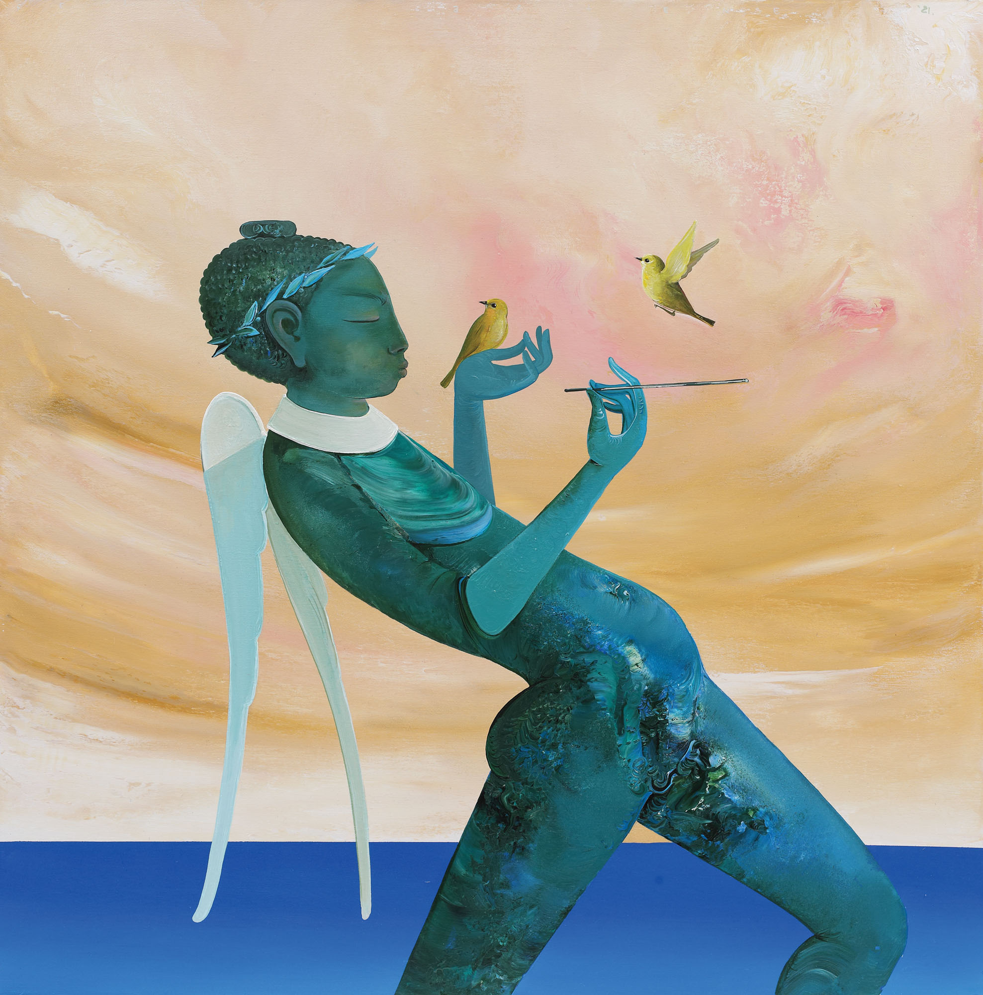 semnat, datat și intitulat pe verso, cu negru, "Felix Aftene, Primăvara, Îmblânzitorul de păsări, 2021"