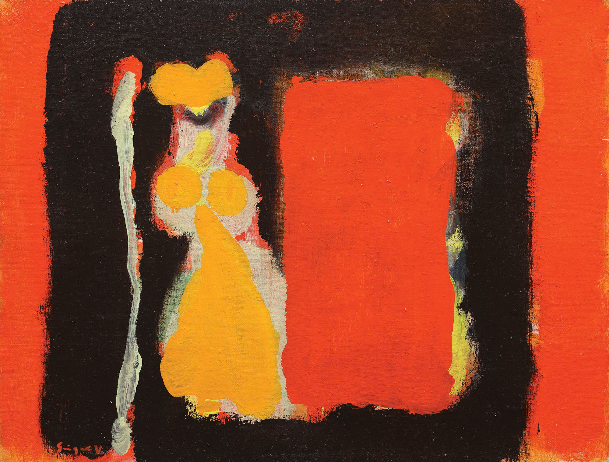 semnat stânga jos, cu oranj, ”Grigore V.”