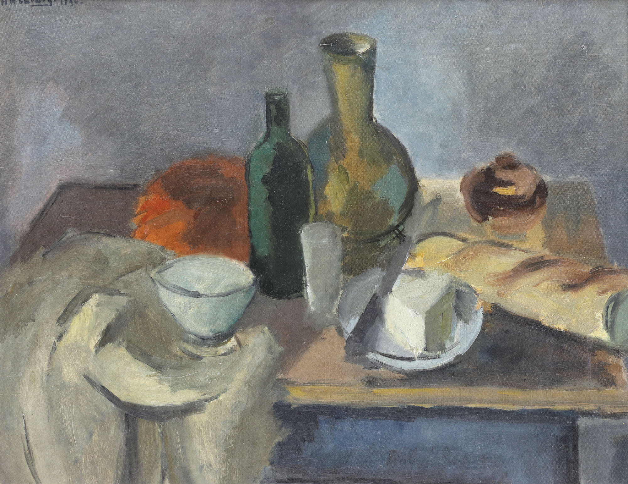 48. Natură statică cu vin, brânză și franzelă [1936]