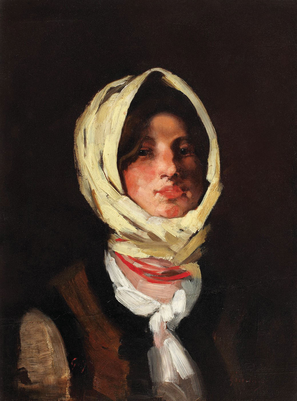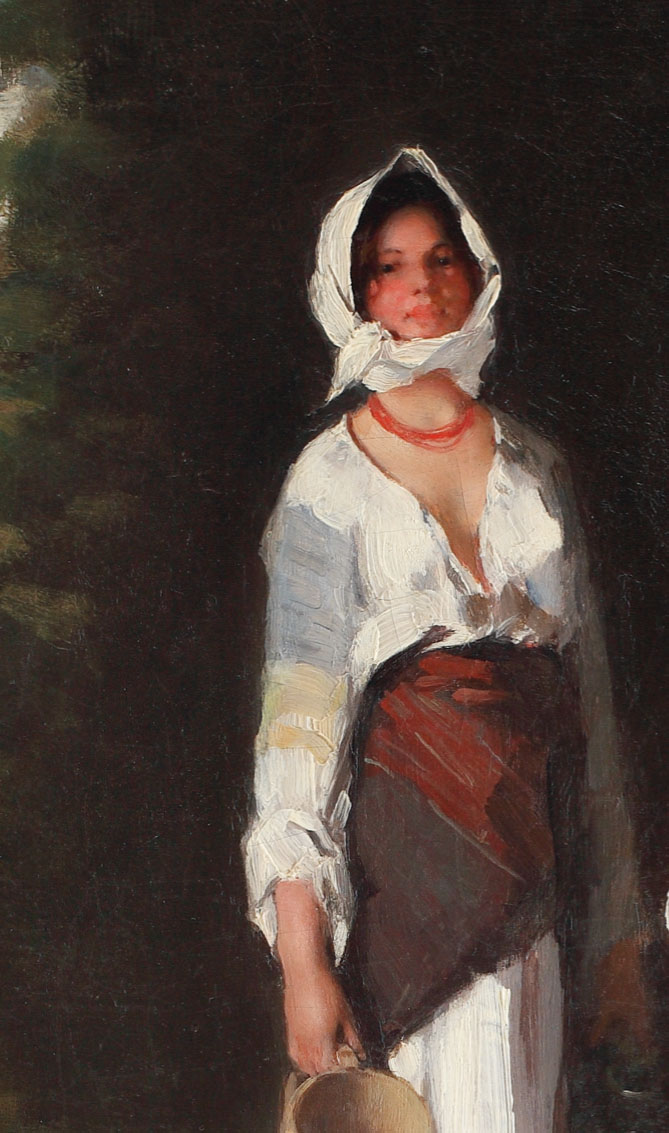 Pictorul Nicolae Grigorescu provine dintr-o familie de condiţie modestă fiind cel de al şaselea copil, penultimul, al lui Ion Grigorescu, administrator al moşiei de la Pitaru a lui Filip Lenş, şi al Ruxandrei. În 1843, după moartea tatălui tânărul vine cu familia în Bucureşti, unde ia primele lecţii de pictură, împreună cu fratele său, Gheorghe (n. 1835), de la un unchi, zugrav de biserici. În 1848, ambii băieţi sunt admişi în atelierul lui Anton Chladek [1794-1882], pictor şi miniaturist sârb cu notorietate în Ţara Românească, care lucrează în special portrete pentru înalta aristocraţie locală. Talentul lui Nicolae Grigorescu a fost remarcat în scurt timp de Cleopatra Truheţkoi, născută Ghica,care îl invită la Băicoi (Prahova), să picteze ctitoria ei din localitate. Până în 1862 când pleacă să studieze la Paris, tânărul pictează biserici (Căldăruşani, Zamfira, Agapia, Pucheni). Şansa de-a primi bursă i-a surâs în urma vizitei lui Mihail Kogălniceanu la mânăstirea Agapia. Perioada de după 1862 marcheaza evoluția decisivă a lui Nicolae Grigorescu, care în mai puțin de un deceniu devenea cel mai important artist al artei românești. Anii petrecuți la Paris, urmați de perioada de ucenicie în sânul Coloniei de la Barbizon deschideau universul plastic al artistului, care avea să se materializeze ulterior într-o creație românească excepțională. Dacă prima perioadă este definită de experimente cromatice, plastice, de subiect și chiar de rezonanța lor culturală, după 1878-1880 Grigorescu avea să își dedice o bună parte din operă materializării spiritului românesc pe pânză. Este perioada marilor compoziții ce aveau să îl plaseze în vârful artei românești: de la operele reprezentative din campania ocazionată de Războiul de Independență, la pictarea carelor cu boi și până la portretizarea țăranului român. Portretul de țărăncuță, apărut în creația lui Grigorescu încă din deceniul 7 al sec. al XIX-lea, avea să fie dezvoltat după un tipic propriu, atât din punctul de vedere al construcției plastice, cât și din prisma tematică. Din etapa de creaţie cuprinsă cu aproximaţie între 1880 şi 1900 regăsim o seamă de portrete de țărăncuțe ce probează acest fapt: „Cap de ţărancă” din 1879-1885 (Muzeul Naţional de Artă al României), „Ţărăncuţă” din 1883-1890 (Muzeul Naţional de Artă al României), „Cap de fată (Cap de ţărăncuţă) din 1885-1890 (Muzeul de Artă din Craiova) sau „Ursăreasa din Bolduri” din 1885-1890 (Complexul Muzeal Iaşi), toate reprezentând chipuri de fete tinere, încadrate de baticul alb, care le separă de fundalurile întunecoase. Totodată, picturi cu acelaşi tip de subiecte, tratate asemănător, precum „Cap de fată cu basma albă” din 1890-1900 (Complexul Muzeal al Judeţului Prahova), „Ţărancă” datată 1894 (Muzeul Naţional de Artă al României) sau „Mina” din 1904 (Colecţia Margareta şi acad. Dumitru Dumitrescu, Bucureşti) extind până la 1900, şi chiar la primul deceniu al secolului al XX-lea, intervalul în care opera prezentă ar putea fi încadrată temporar. Cu certitudine însă, pictura este un rezultat al maturităţii artistului, făcând parte din galeria atât de sugestivă de figuri de muntence a lui Nicolae Grigorescu, în special cele pictate în zona Rucărului.
