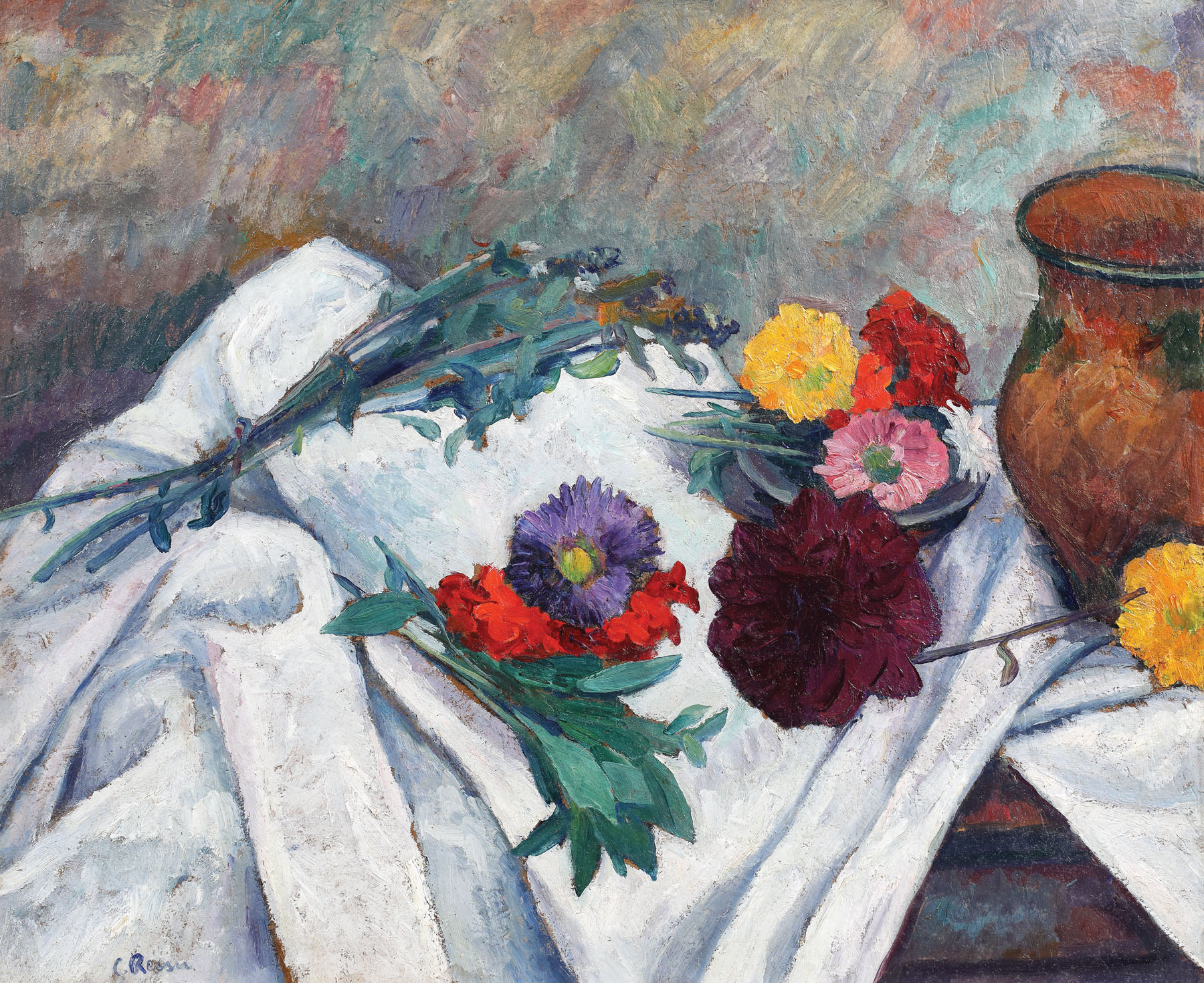 semnat stânga jos, cu albastru, "C. Ressu"