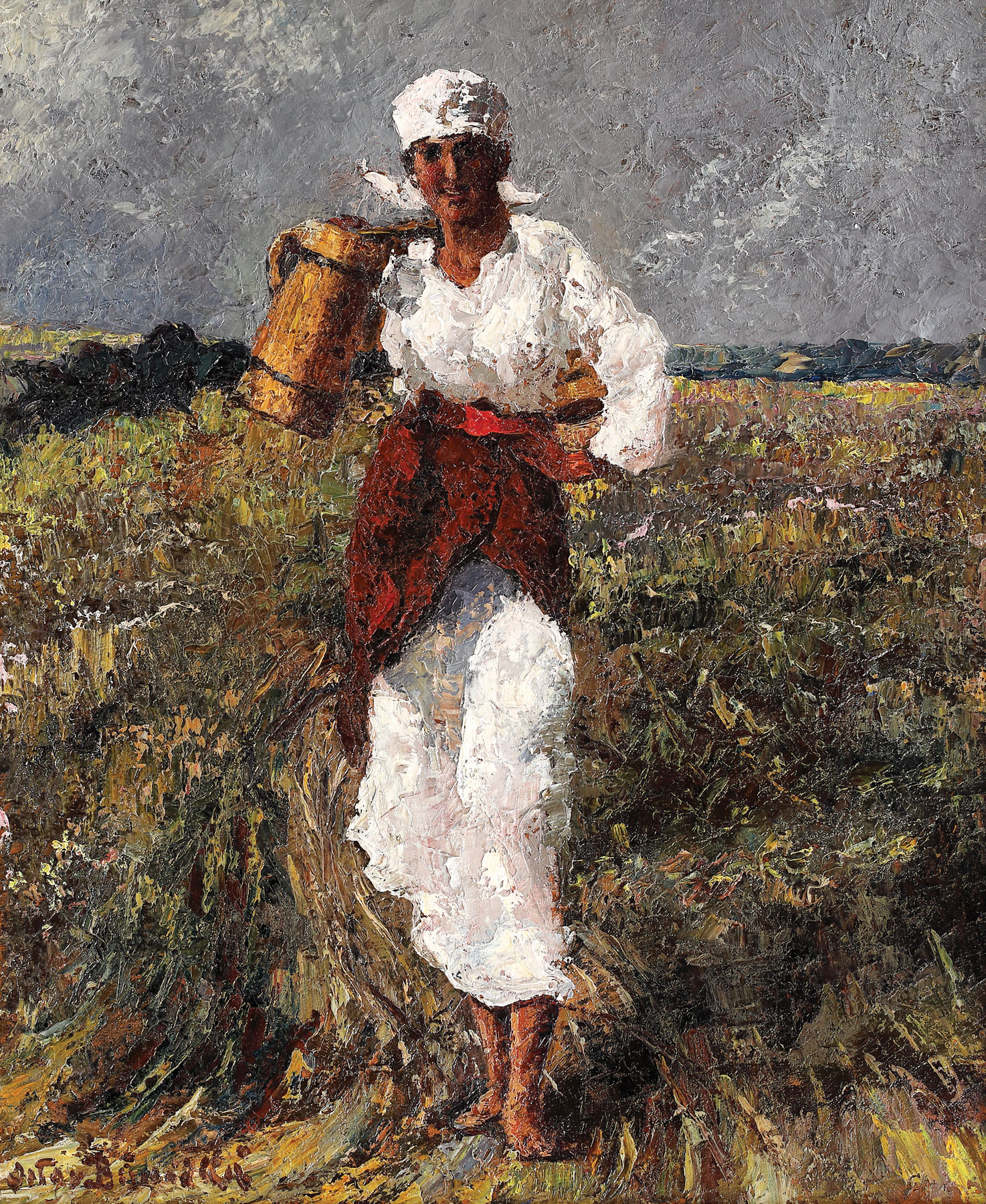 Cu o operă construită în jurul vieții omului și sensibil la fenomenele sociale la care acesta ia parte, artistul Octav Băncilă crează o operă inspirată din realitatea verosimilă, unde țăranul roman va ocupa loc de seamă. Îl va zugrăvi în două ipostaze sociale importante: înainte și după împroprietărire. În prima ipostază, îl întâlnim sub statutul de iobag, strâmtorat și fără vlagă, pe când în a doua, după împroprietărire, țăranul rob dispare, în locul său apărând țăranul răzeș, înfățișat în atmosfera țarinei sale, pe care o trudește de această dată cu mai mult spor și mulțumire. (G.M.)