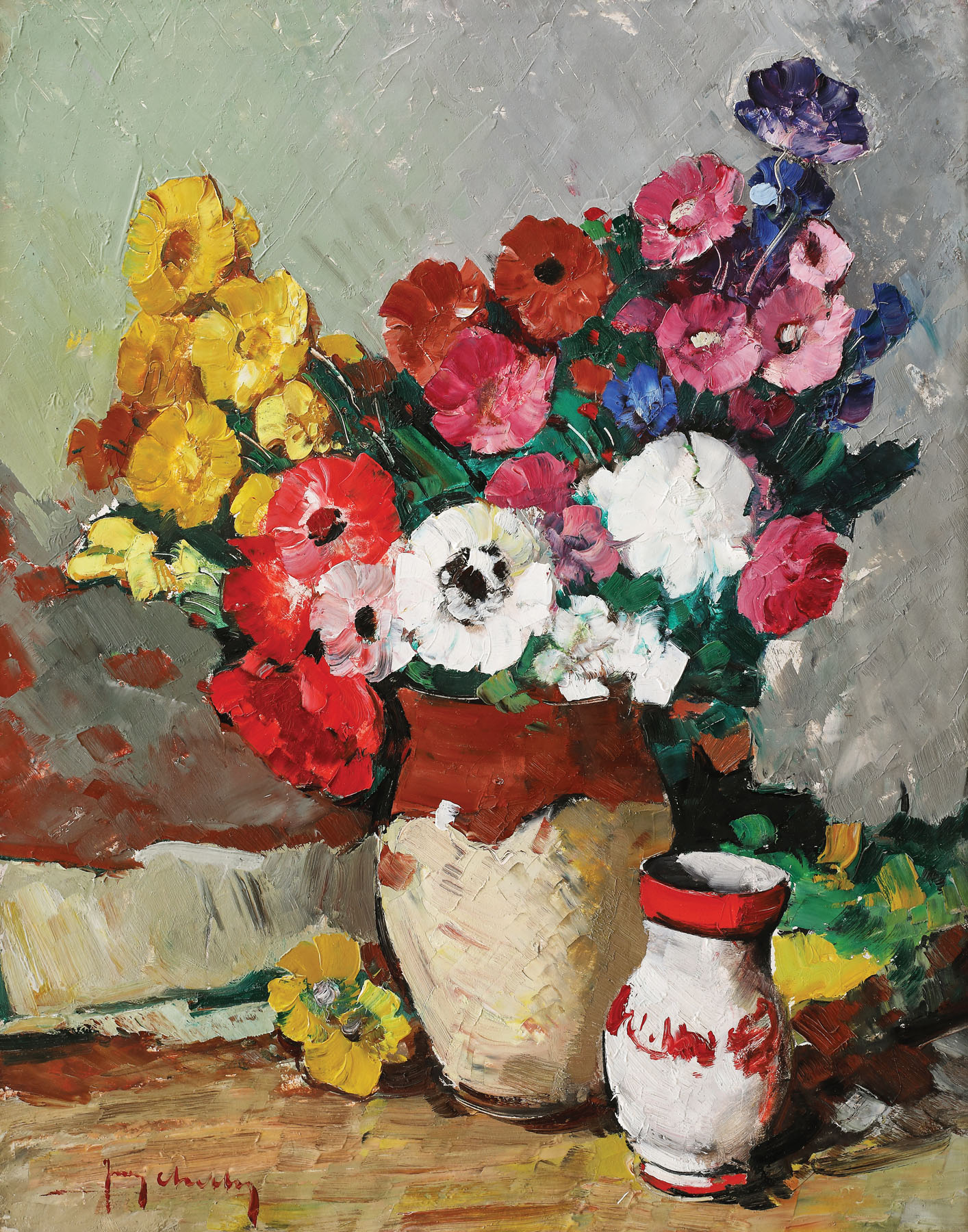 semnat stânga jos, cu roșu, "Jean Cheller"