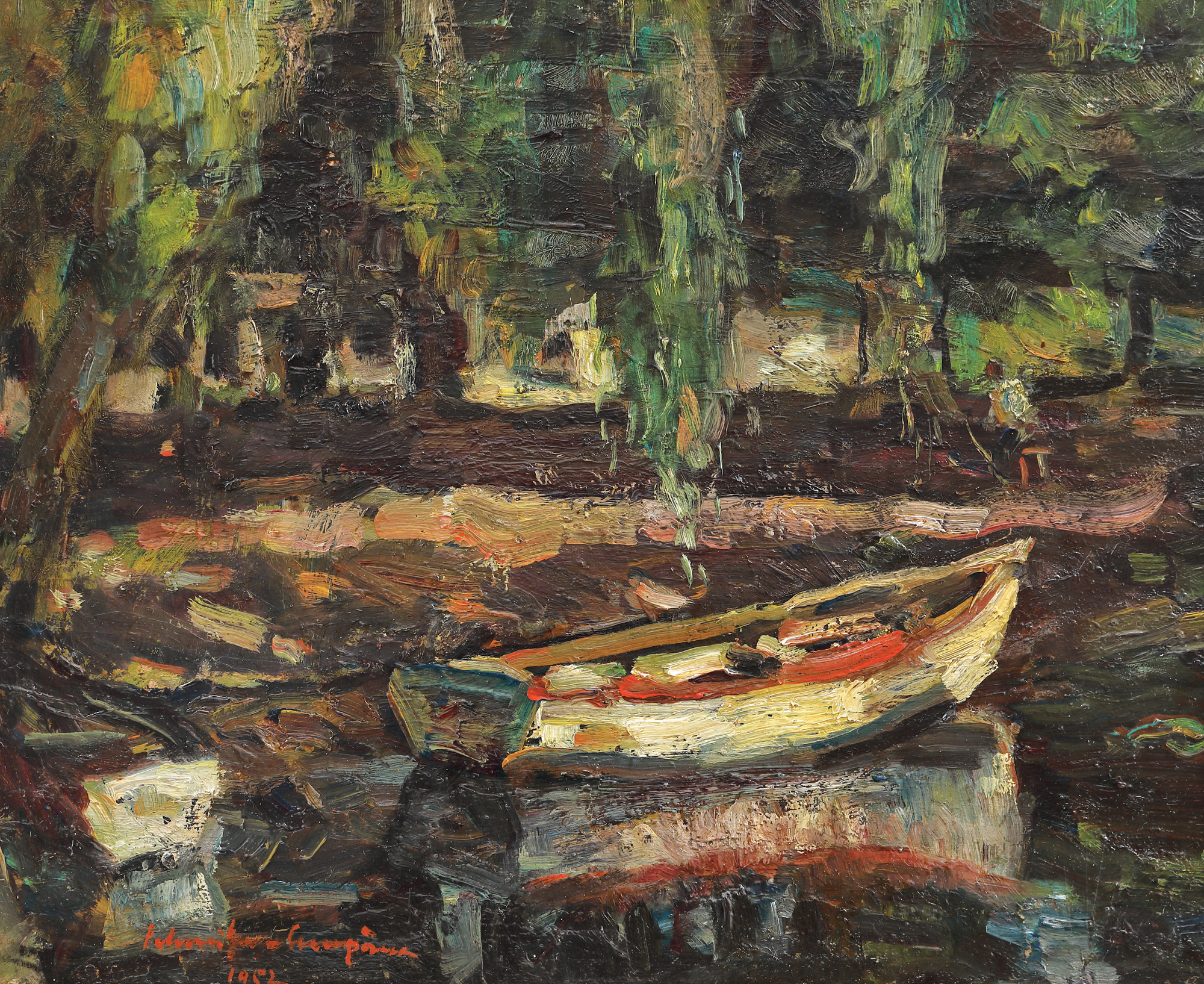 semnat și datat stânga jos, cu roșu, ”Schweitzer-Cumpăna, 1952”