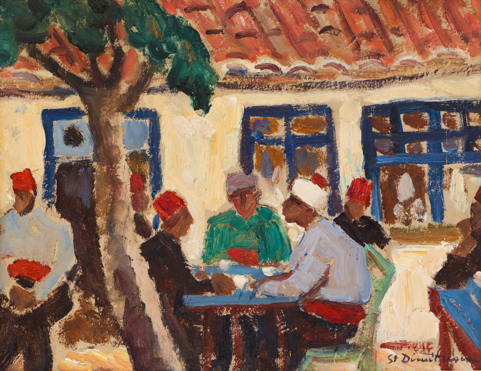 Artistul surprinde adesea lumea satului sau culoarea locală a Dobrogei, portrete de turci, țărani sau muncitori. În portrete mizează mai degrabă pe descifrarea complexității tumultului interior al protagoniștilor săi, conferindu-le expresii neutre sau, uneori, meditative. Portretul îi permite, de asemenea, să se impună și în postura de desenator. Personajele schițate se împletesc armonios cu deciziile cromatice ale artistului. Veleitățile sale din sfera muzicală sunt transcrise în ritmuri cromatice armonioase, cu accente puternice, în contraste evidente. Prin culoare, Dimitrescu subliniază atât umbra și lumina, cât și forma și modelajul. Acordă, de asemenea, o atenție deosebită vestimentației personajelor sale și accesoriilor pe care le primesc acestea. Preocuparea pentru tematica socială și interesul incontestabil pentru psihologia umană sunt remarcate atât în scenele de gen sau portrete, cât și în peisaj. În timpul studiilor realizate la Paris, seva creației cézanniene avea să se aciueze de pânza pictorului român, a cărui predilecție pentru plasticitatea riguroasă era indiscutabilă. Artistul realizează o întreagă serie dedicată tătarilor din Mangalia, Techirghiol sau Balcic, peisajelor marine și străzilor dobrogene. Pornind de la crezul conform căruia artistul poate învăța în orice împrejurare, Dimitrescu folosește călătoriile în țară și în străinătate drept repere vitale în căutarea sensului creației sale. În compozițiile cu personaje, și-a îndreptat atenția cu precădere asupra țăranului român, însă pânzele sale sunt bogate și în aparițiile tătarilor din zona Dobrogei. Dezinvoltura orientală din lucrările artistului potențează prezența monumentală a protagoniștilor, surprinși în gesturi simple și îndelung calculate. Dimitrescu posedă o desăvârșită putere de analiză și sinteză totodată, astfel că va surprinde, prin liniile care descriu chipuri și siluete, umanitatea și factorul etnic al modelelor sale. Va pătrunde în subconștientul protagoniștilor săi și va fi atras, indiscutabil, de exotismul și pitorescul Dobrogei. În pânzele pictate aici vom regăsi îndeosebi oamenii adunați în jurul meselor, în atmosfera insolită a teraselor și cafenelelor. Fin observator, artistul va fi capabil să redea, prin porturile și obiceiurile personajelor, atmosfera locală. Perioada 1927-1933 se va dovedi a fi prolifică în economia creației sale. Dimitrescu își petrece cu predilecție timpul în preajma litoralului și împumută nuanțele puternice și impunătoare ale Balciului operelor sale. Perspectiva pe care o transcrie pictural e vizibil îngustată, artistul bucurându-se de plenitudinea panoramică pe viu și ocupându-și pânzele cu decupaje limitate la un subiect anume. Din Balcic provin unele dintre cele mai colorate compoziții ale sale – ”Cafeneaua lui Ismail”, în care predomină tușele însorite, ori ”Brutăria lui Mamut”, în care artistul mizează pe o plasticitate decorativă. Pictura lui Dimitrescu rămâne, așadar, o piatră de hotar în economia artei românești, puternic înrădăcinată în tradiții și obiceiuri.
