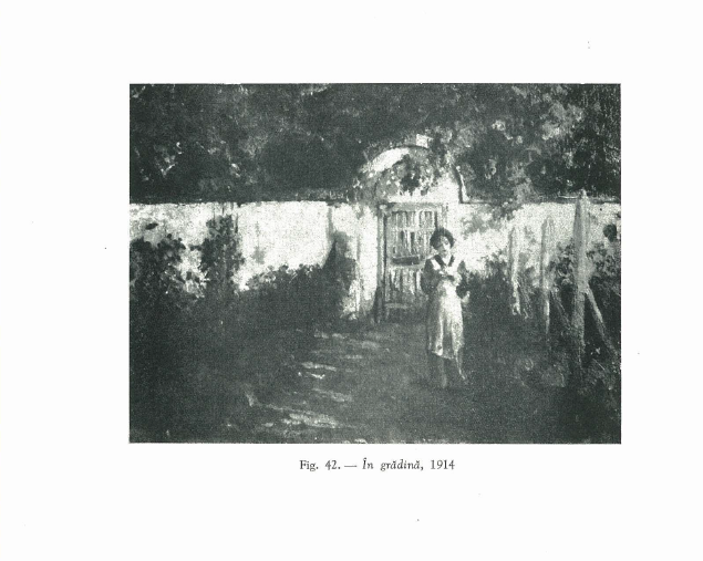 Nicolae Vermont va avea muze feminine, dedicând întregi cicluri tematice unor personaje precum chivuțele din mahalalele moldave, îmbrobodite cu basmale și șorțuri înflorate, purtătoare de coșuri mari, încărcate cu flori; ori țărăncuțelor surprinse în intimitatea căminului ori în desfășurarea muncilor zilnice. Însă în mod inevitabil artistul va avea o sursă de inspirație în propria sa familie, astfel vom regăsi printre modelele preferate pe soția și pe fiica sa. Micuța Zoe Vermont se naște în anul 1911 și devine subiect central al pânzelor tatălui său. Schițată frugal, în creion; ori studiată îndeaproape în ulei, Zoe Vermont ni se va înfățișa frecvent în ipostaze de maximă concentrare, de melancolie ori reverie. Dragostea și grija paternă se vor manifesta, așadar, în permutarea peniței și a pensulelor lui Nicolae Vermont către ridicarea chipului fiicei la rang de laitmotiv. Zoe Vermont va moșteni ambiția plastică a tatălui și va deveni, la rândul său, artistă. Se va manifesta îndeosebi în grafică și desen și se va îndeletnici cu redarea peisajelor și a portretelor. Va fi prezentă pe simezele manifestărilor artistice ale Salonului Oficial de la mijlocul secolului trecut, ajungând astfel în fața publicului și în postura de creatoare, nu doar din cea de model. Cu frizura inspirată din epoca franceză, așadar cu părul tuns scurt, deasupra umerilor și cu bretonul drept ce se întinde ușor pe frunte, protagonista operei de față se-nfățișează în fața privitorilor cu o delicată fundă albastră legată la spate, cu rochița roz, diafană, care se-ntinde către genunchi, cufundată în mrejele lecturii. Peisajul impresionist ne indică și de această dată preferința lui Vermont pentru pictura în plein-air. Cele două personaje feminine, cel mai probabil mamă și fiică, sunt ilustrate într-un cadru intim, familial, în liniștea și plenitudinea solară a unei zile de primăvară. Veranda este scăldată în razele soarelui, iar paleta cromatică se deschide treptat, fiind puternic imprimată de irizațiile incandescente ale astrului diurn. Tonurile delicate de roz se completează armonios cu verdele vegetației și albul diafan al feței de masă, al pereților ori al cerului.