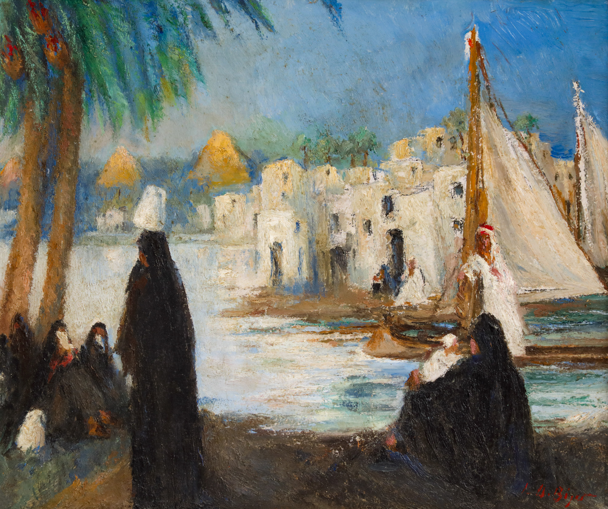 semnat dreapta jos, cu roșu, "L.A. Biju"