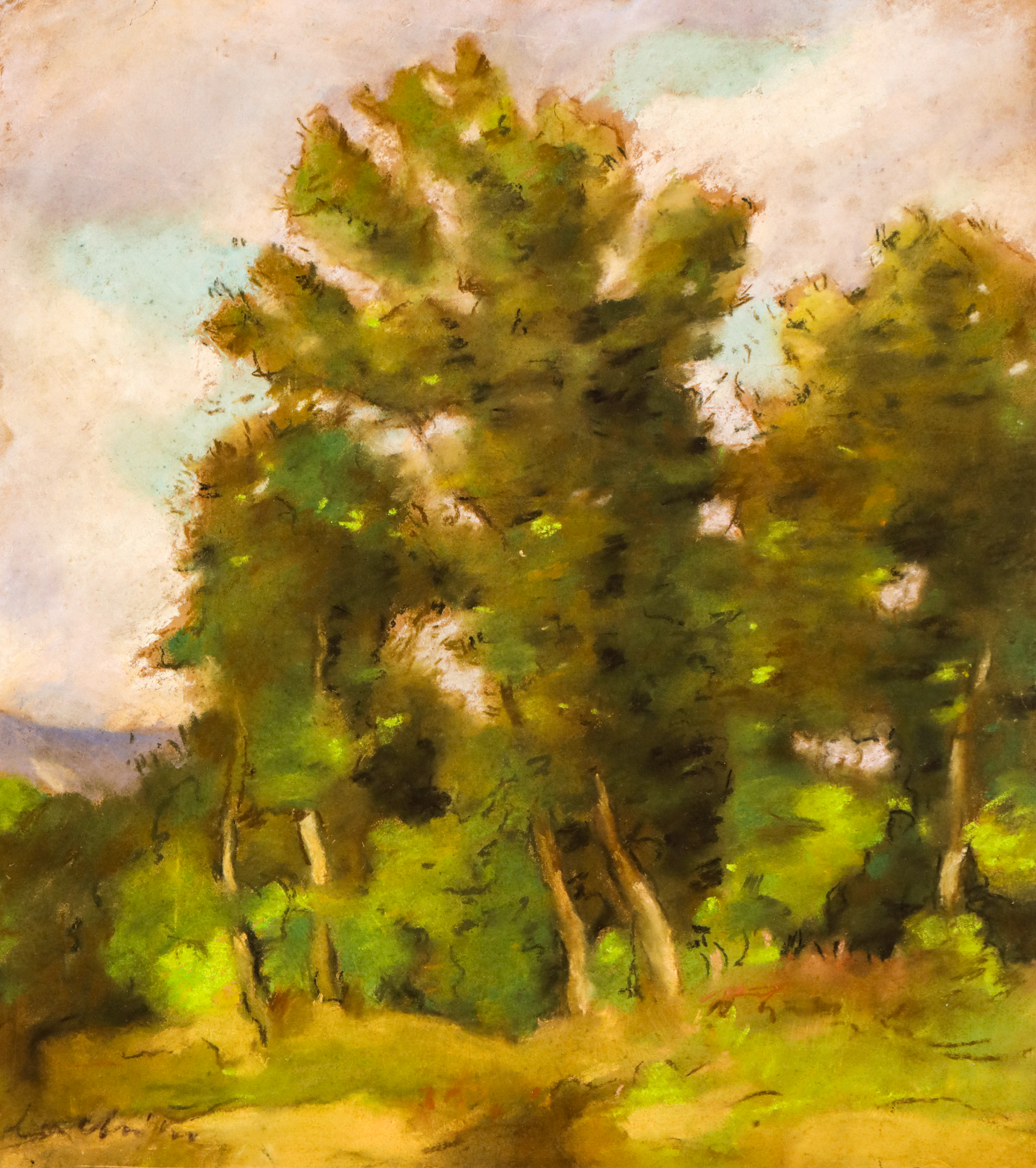 În vara anului 1908, Ștefan Luchian ajunge la Brebu cu unul dintre primele automobile ale epocii, aparținând rameurului Moser. Moser era un prieten al lui Ernest Cocea, soțul verișoarei artistului, Paulina Cocea. Însoțit de familia Cocea, Luchian va întreprinde, vară de vară, itinerarii în scopuri reflexiv-culturale la Constanța, la Poiana din Ialomița, la Techirghiol, în Bărăgan, la Brebu sau Moinești. De la momentul externării sale din Spitalul Pantelimon în anul 1901, artistul va fi nedespărțit de familia care-l preia în grija sa până la finalul vieții. La Brebu, călătorii închiriază câteva odăi și o bucătărie din cadrul mănăstirii. Curtea lăcașului de cult și dealurile de la Lunca Doftanei îi vor servi drept atelier pictorului care, aflat în deplinătatea maturității sale artistice, va realiza aici unele dintre cele mai însemnate opere ale sale. Frumusețea peisajelor, verdele cald al copacilor și albastrul-azuriu al cerului îi vor servi lui Luchian drept inspirație pentru opere precum ”Fântâna de la Brebu”, ”Bucătăria Călugărească” ori ”Turnul de la Brebu”. Într-o perioadă ce s-a întins de-a lungul a doar câtorva săptămâni, artistul a realizat peste douăzeci de peisaje în pastel. Pastelul facilita transpunerea lirică a naturii, menținând gamele cromatice regăsite în peisaj. Arabescurile copacilor ori ale frunzișului și liniștea sufletească a panoramelor rurale vor contribui la desăvârșirea artei pastelului din opera lui Luchian și vor conduce, totodată, la îndeplinirea actului creator în mijlocul naturii. Artistul își rezervă acum o oarecare implicare prin decuparea sau mărirea prim-planului în funcție de propriile crezuri. Într-o scrisoare pe care o redactează la Brebu, Luchian mărturisea: ”Sînt foarte mulțumit și lucrez cu atâta dragoste cum nu-mi aduc aminte să fi lucrat vreodată. Dar numai eu știu cu cîtă greutate pot să înjgheb cîte un peisăjel...dacă n-ar fi splendoarea naturii care să mă mai învioreze, n-aș mai mișca”. Regăsim în cuvintele sale neistovita dragoste față de artă și natură, dar și regretul și neliniștea în fața necunoscutului și a bolii necruțătoare care punea tot mai mult stăpânire pe trupul său.