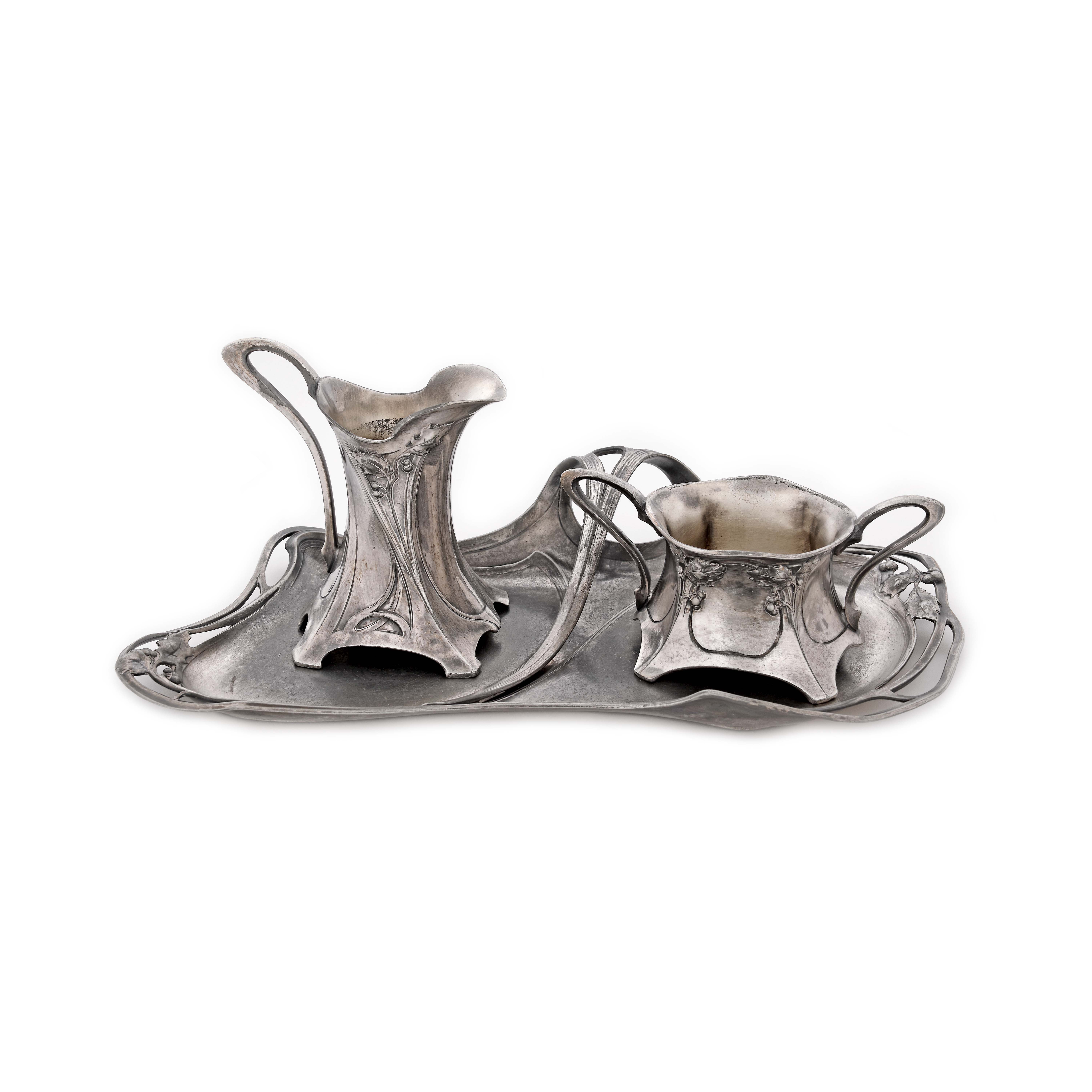 33. Set Art Nouveau WMF, format din zaharniță, letieră și tavă, cca. 1905