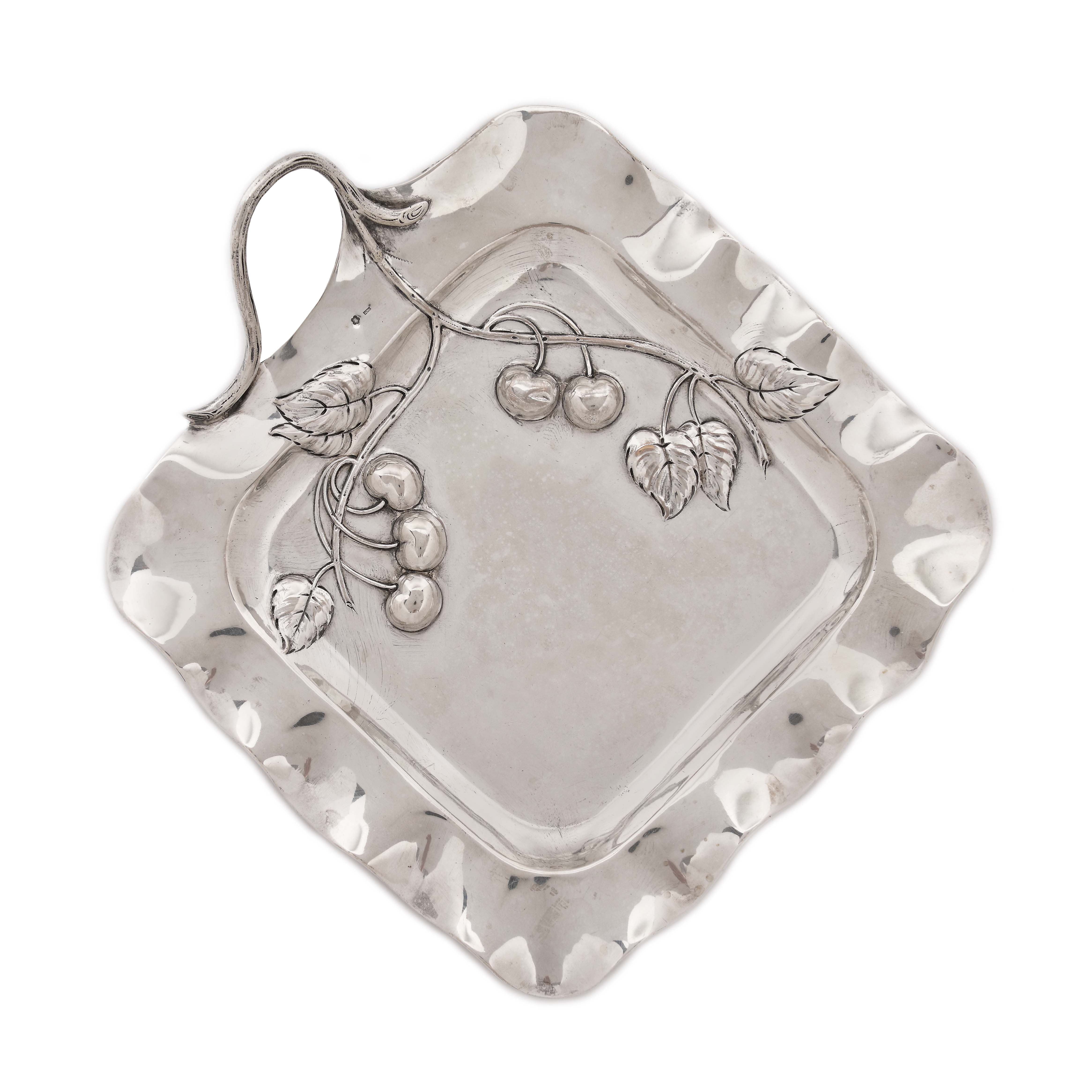 5. Vide-poche Art Nouveau din argint, decorat cu cireșe în relief, cca. 1900