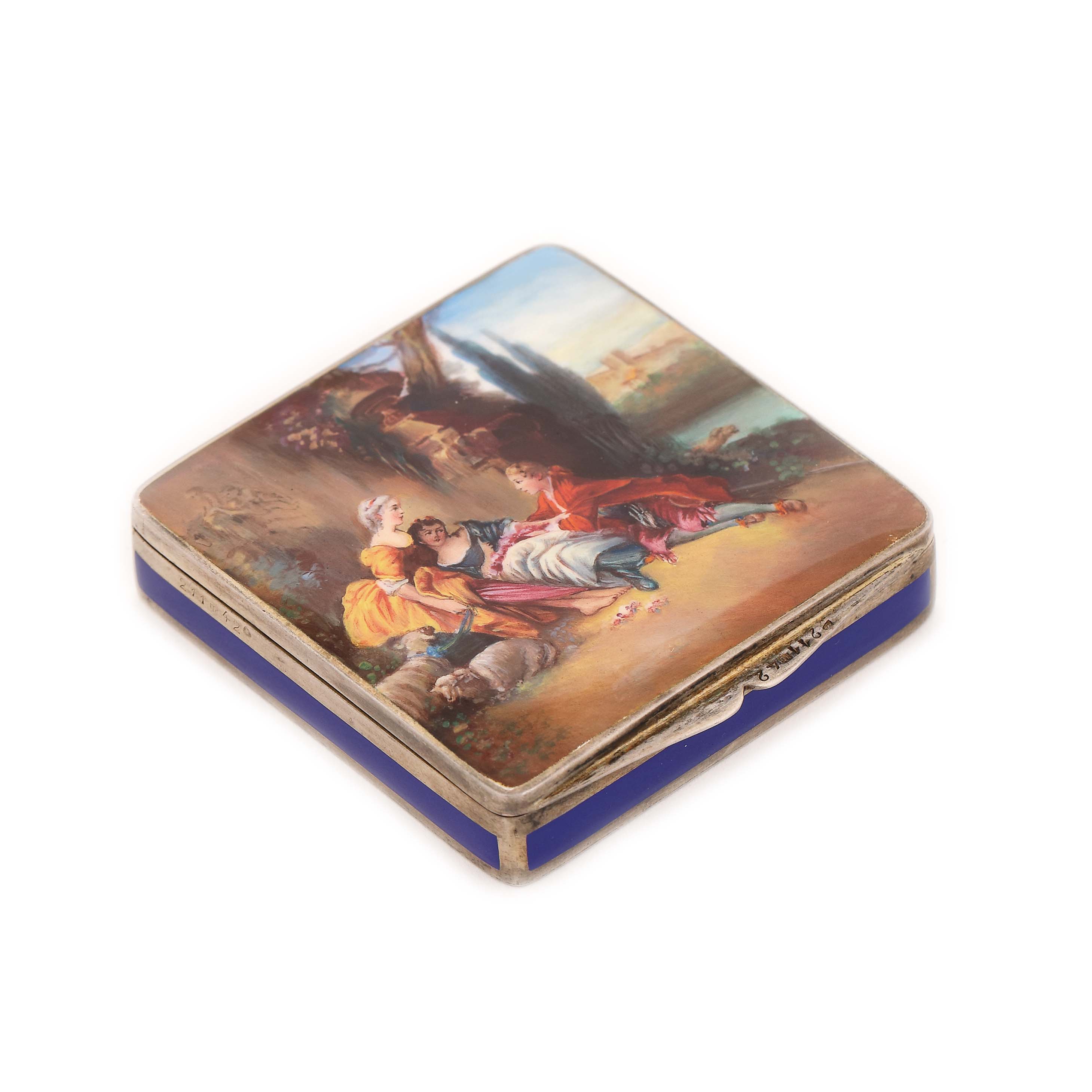 14. „Charms of Country Life” - pudrieră din argint, decorată cu scenă după François Boucher