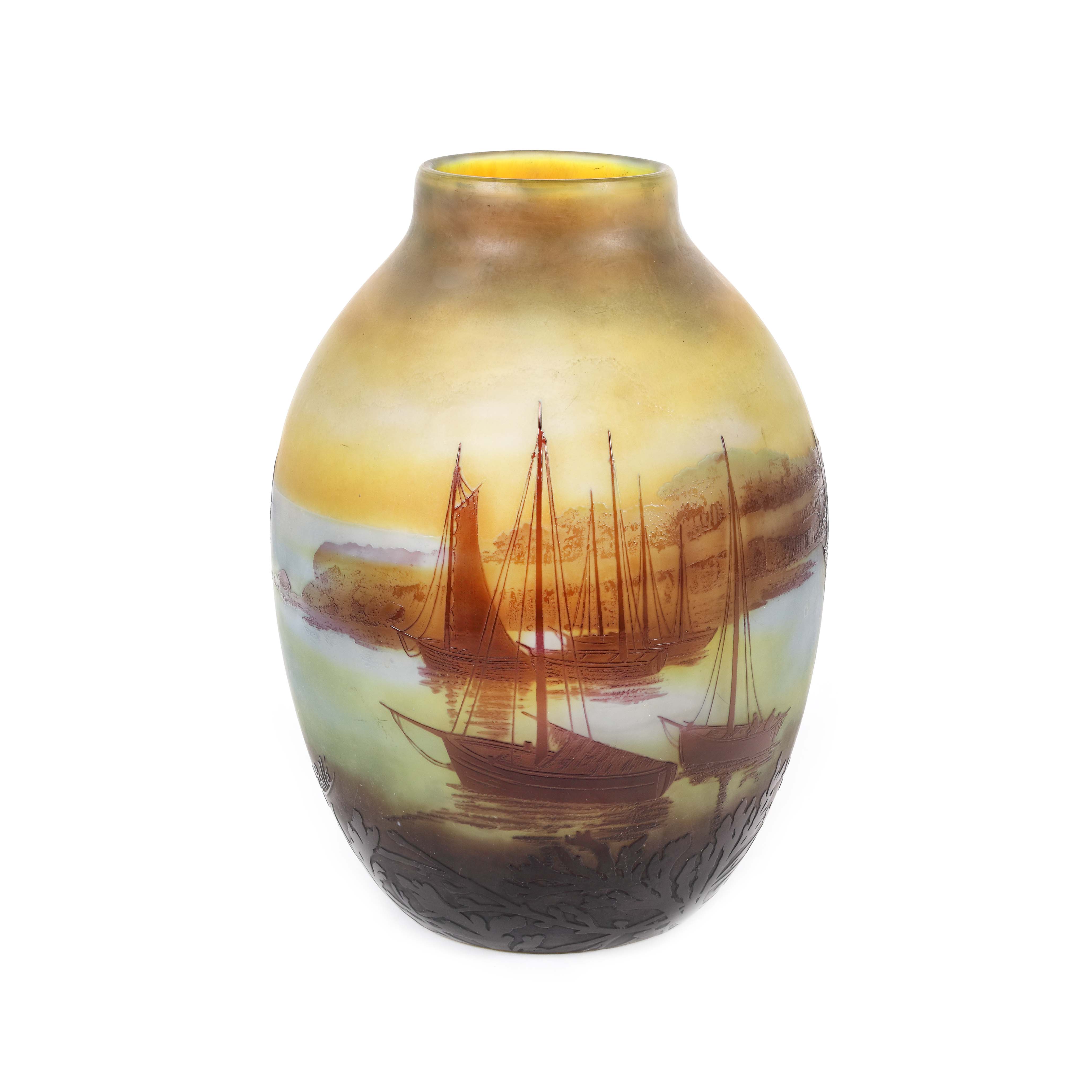 25. ”Voiliers, soleil couchant” - vas Gallé, decorat cu peisaj marin, cca. 1925-1936