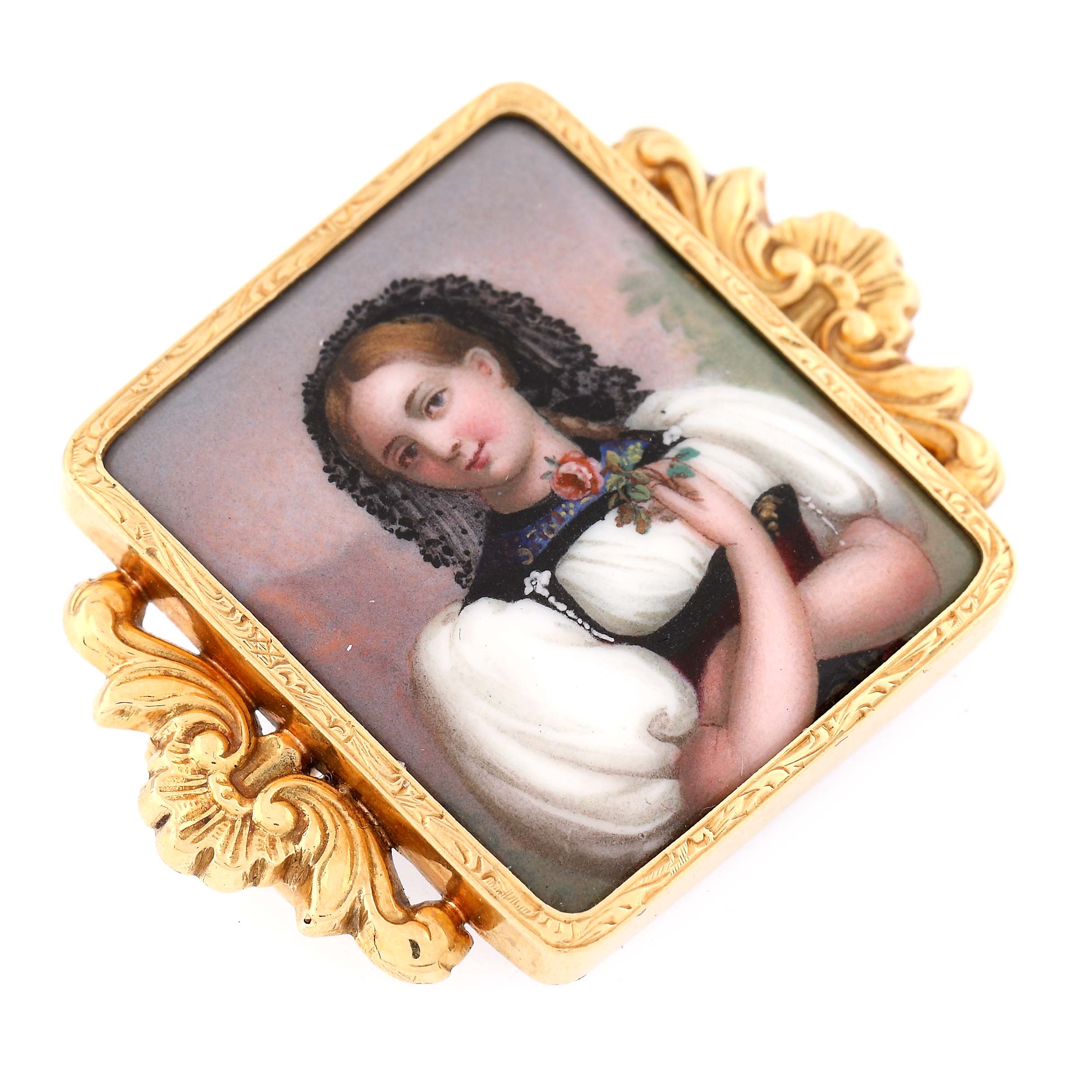 13. Broșă din aur, pictată cu email, cca. 1880
