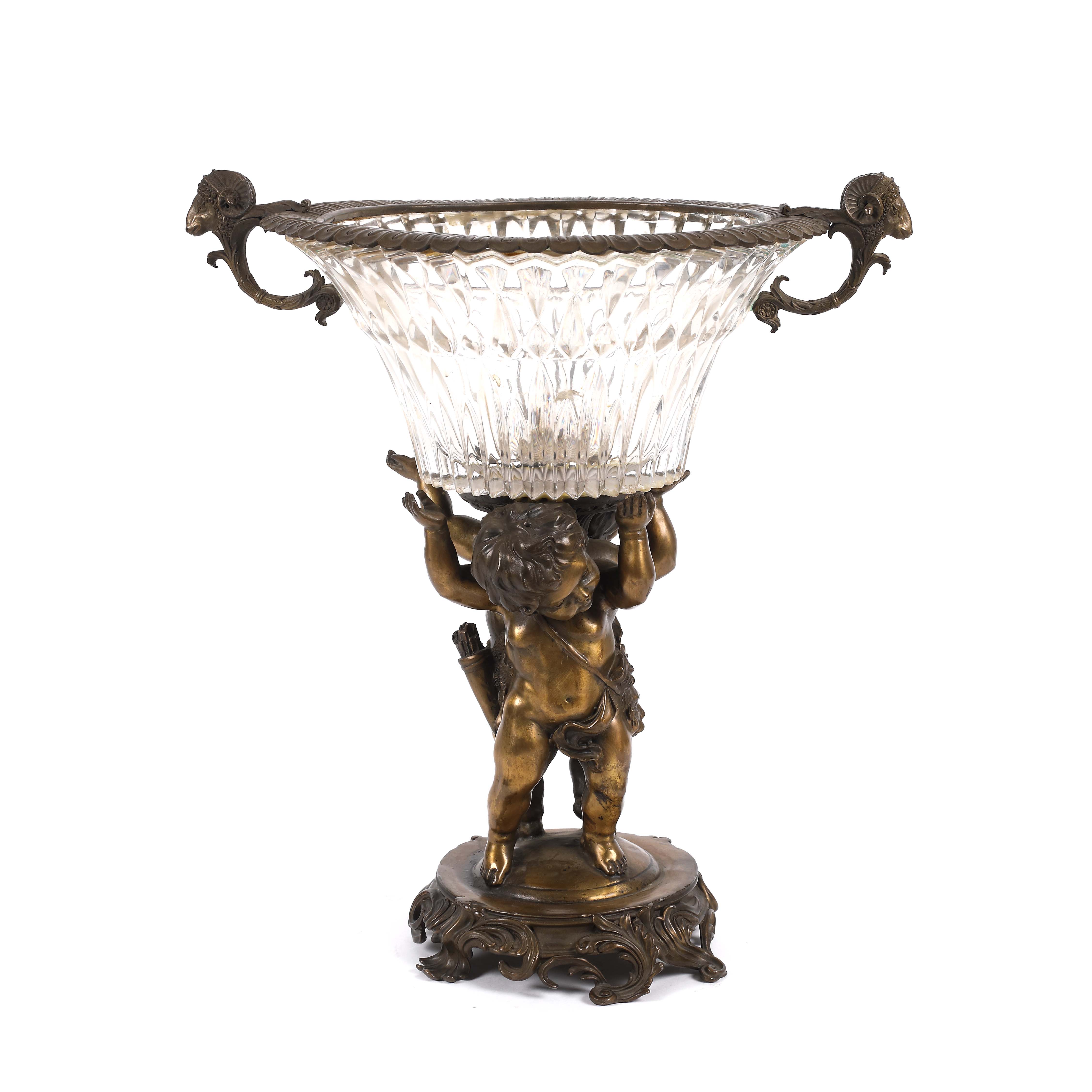 34. Centru de masă în manieră Neoclasică, pe suport putti și anse capete de berbeci [Sec. XX]