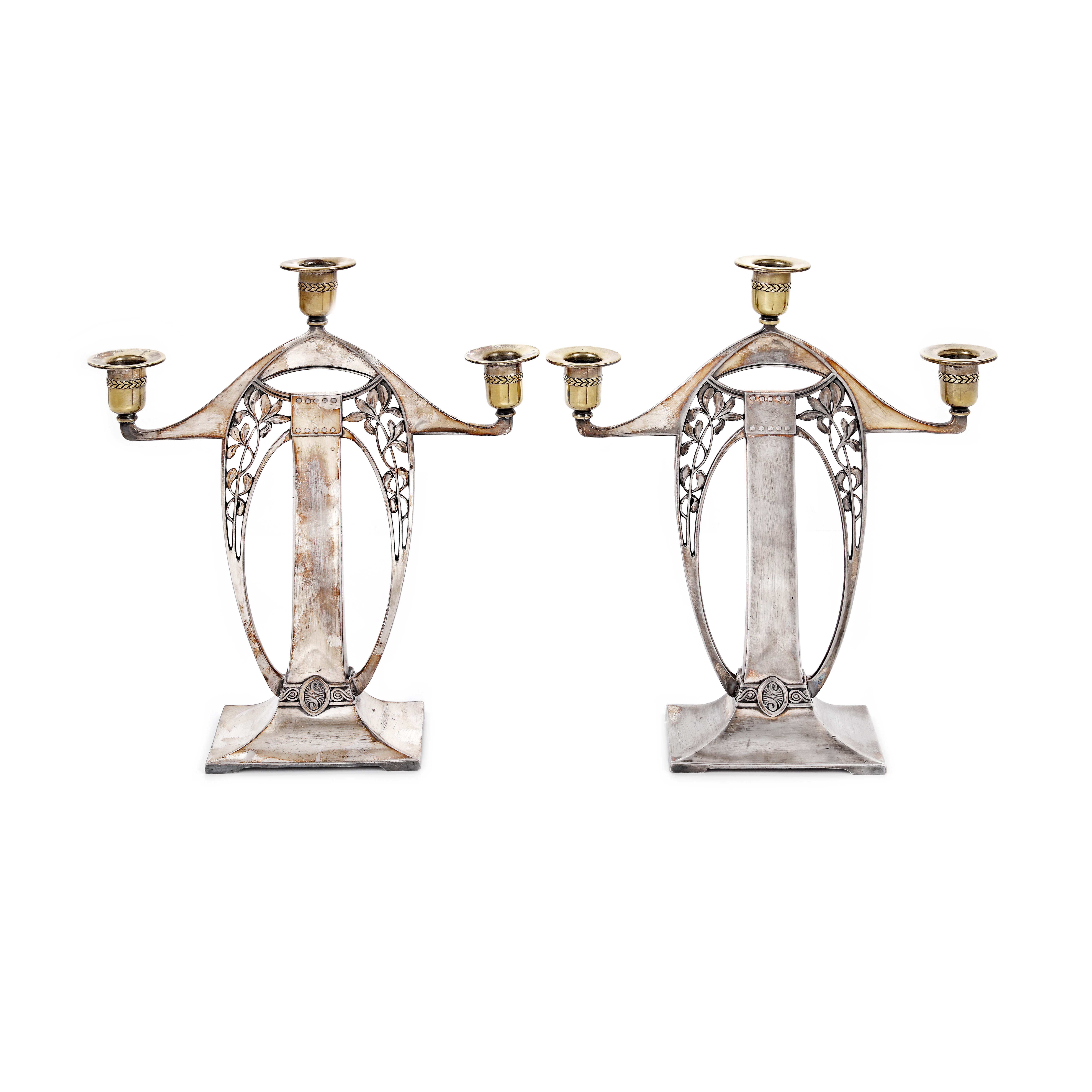 31. Pereche de sfeșnice WMF, Sezession, cu trei lumini, cca. 1900-1909