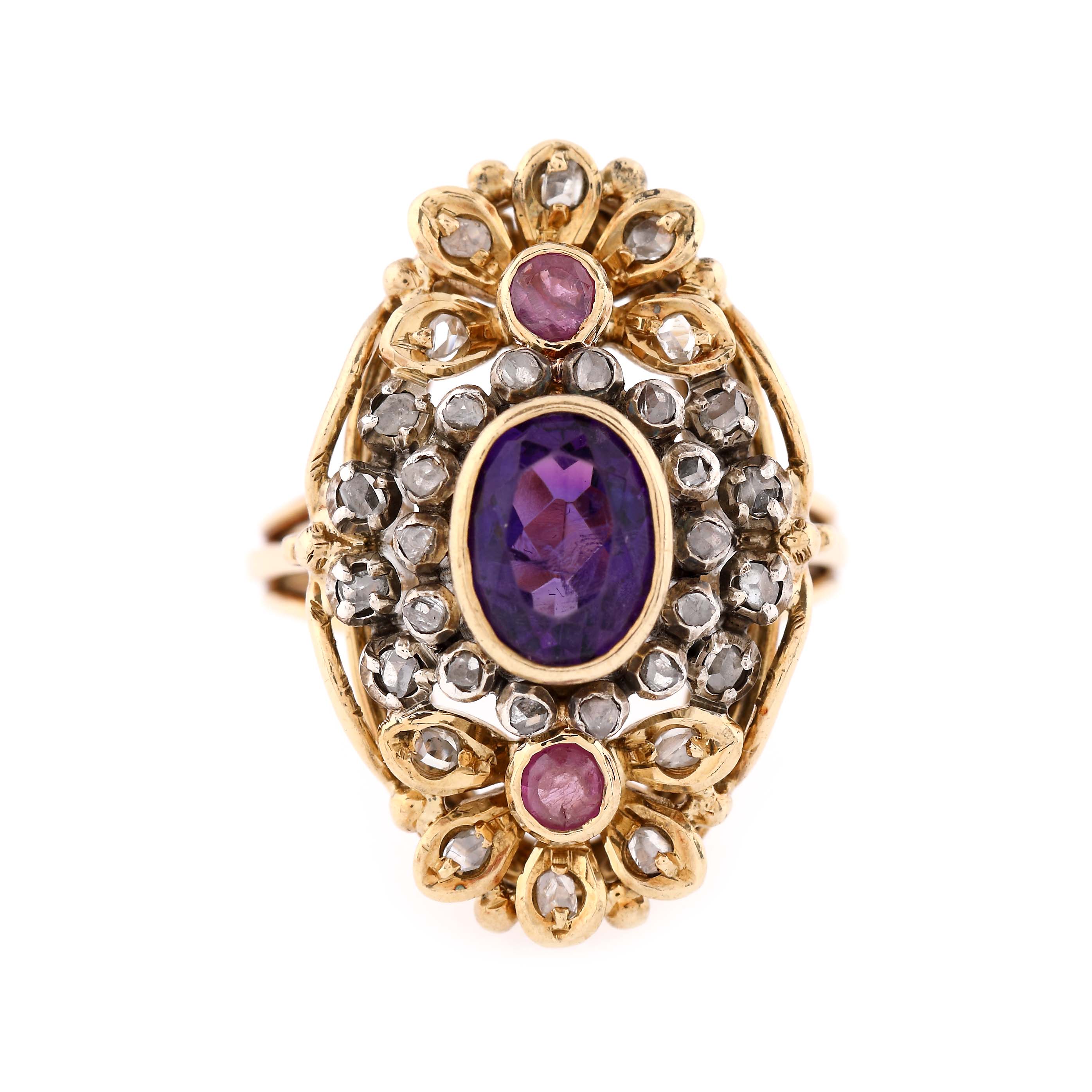 10. Inel din aur și argint, decorat cu ametist, rubine și diamante